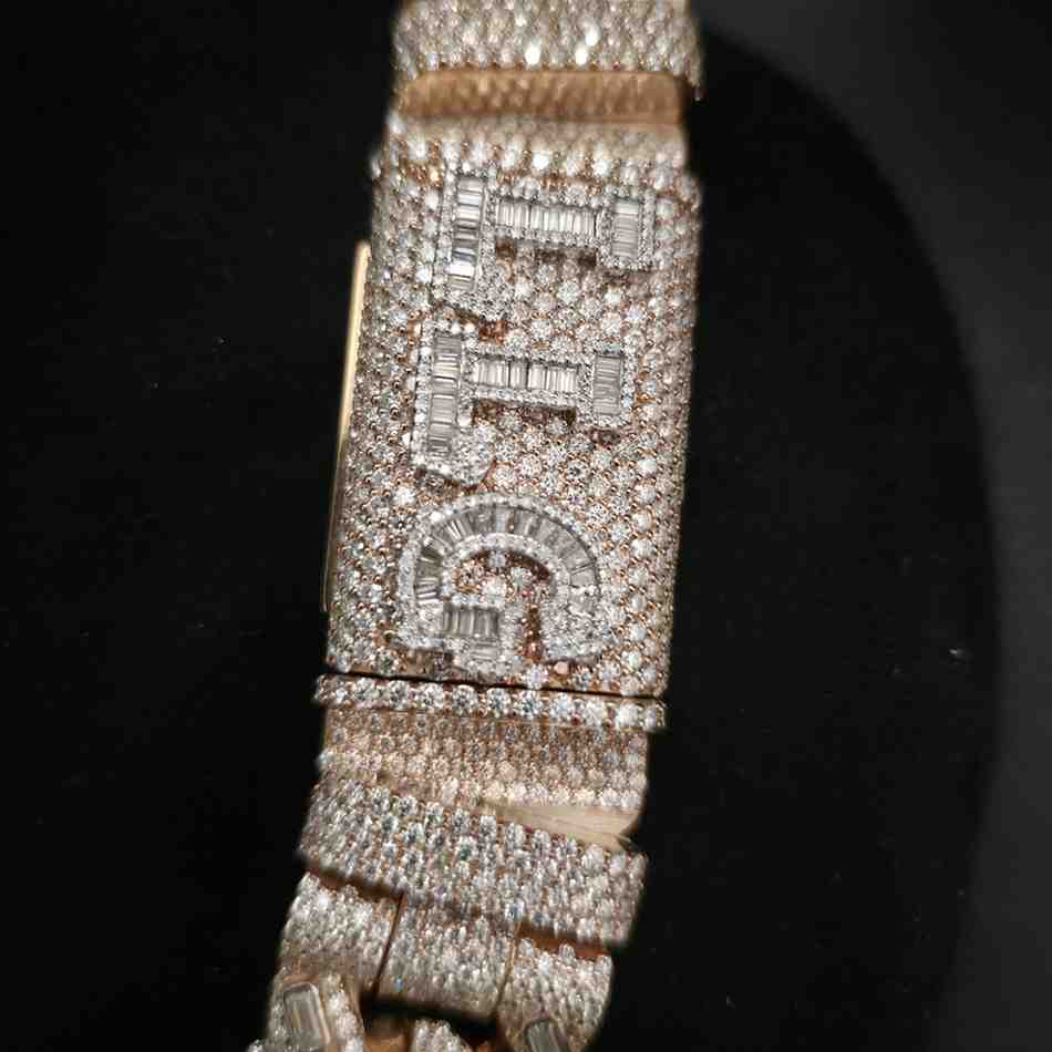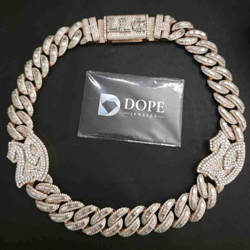 Luxury Full Iced Out 925 Silver Rose Gold Plated 18MM Cuban Chain Hip Hop Jewelry For Cuban Lovers