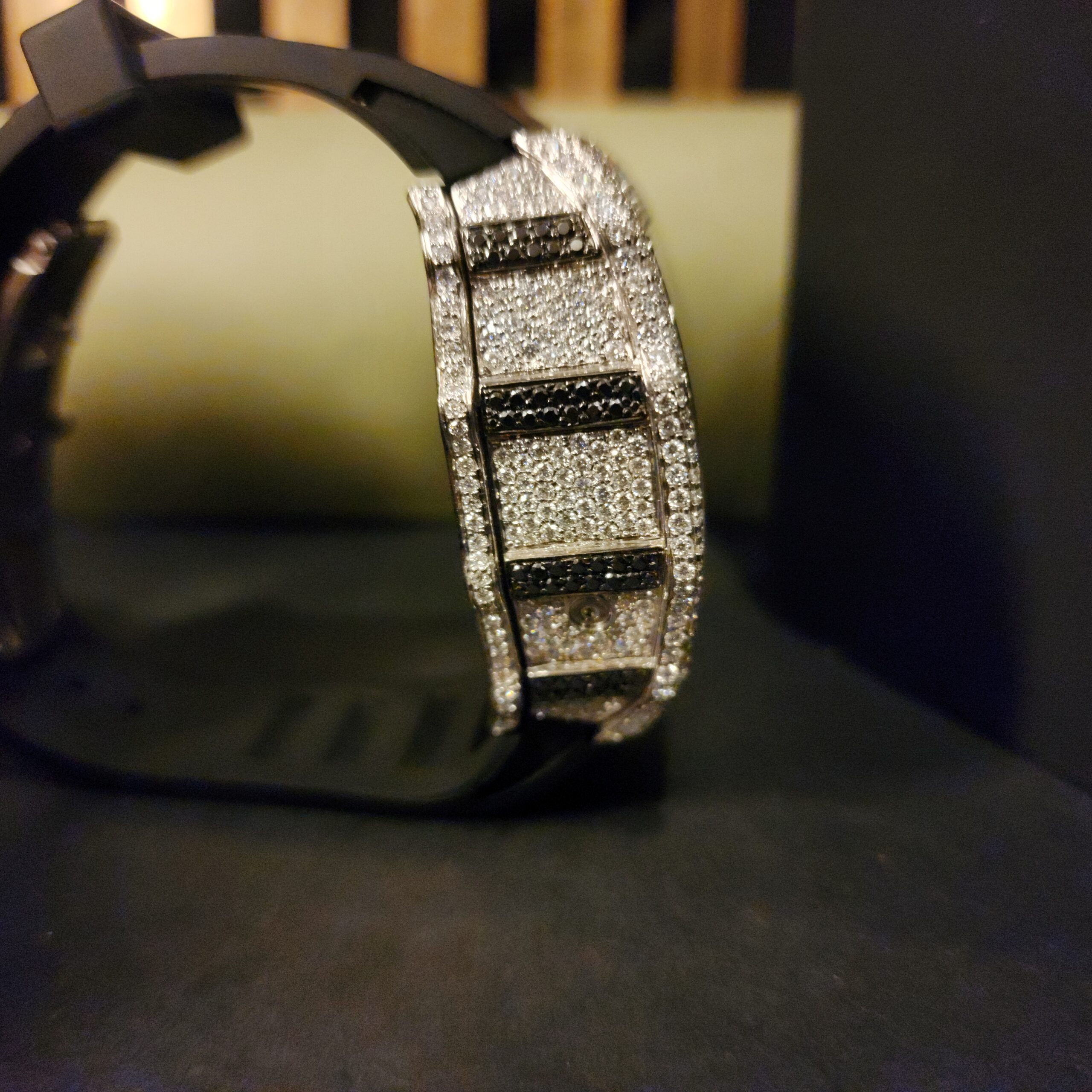 Chronograph Moissanite Diamond Watch With Latest Look Unique Diamond Watch With Black Rubber Belt