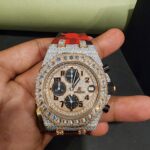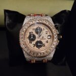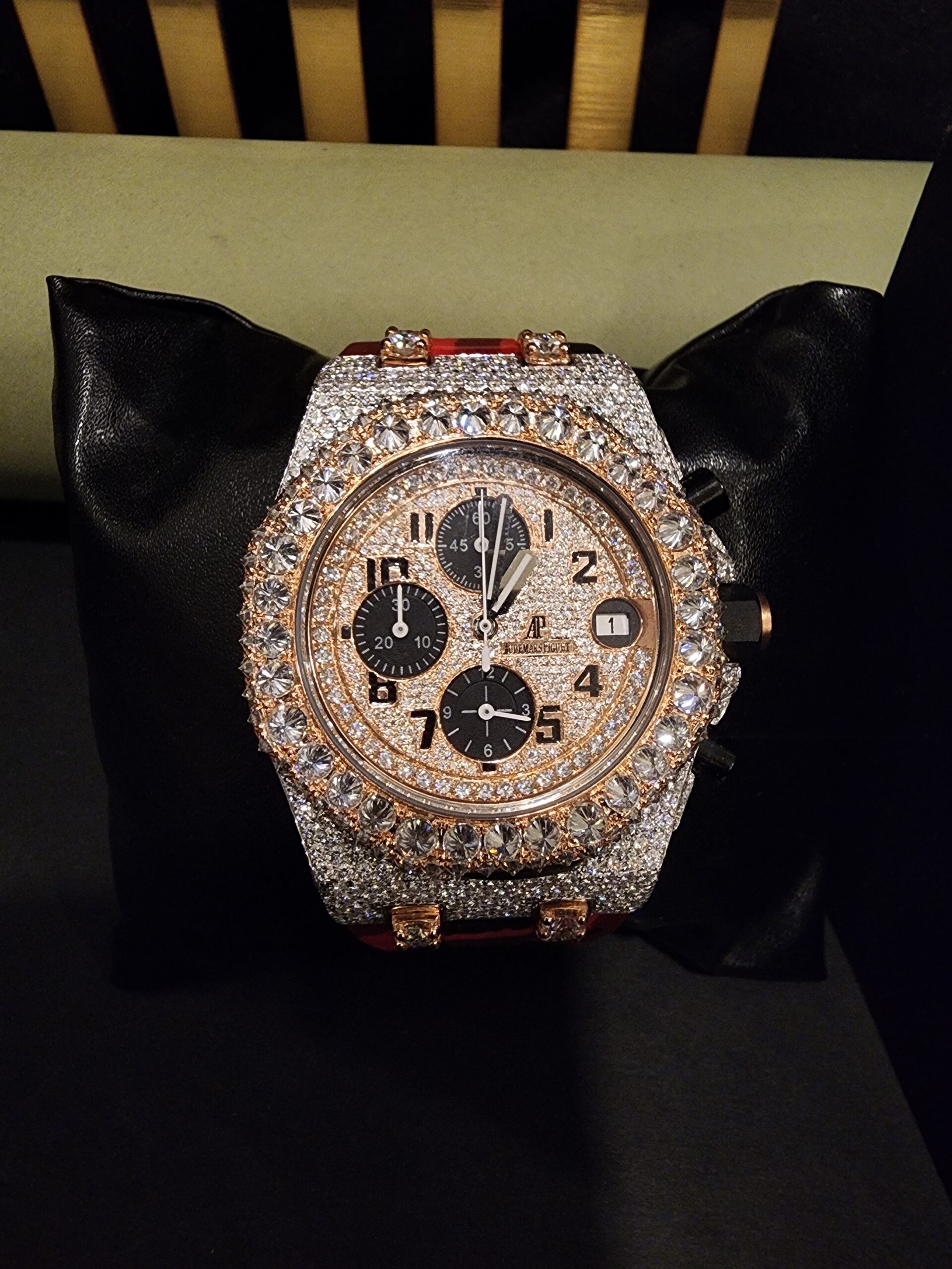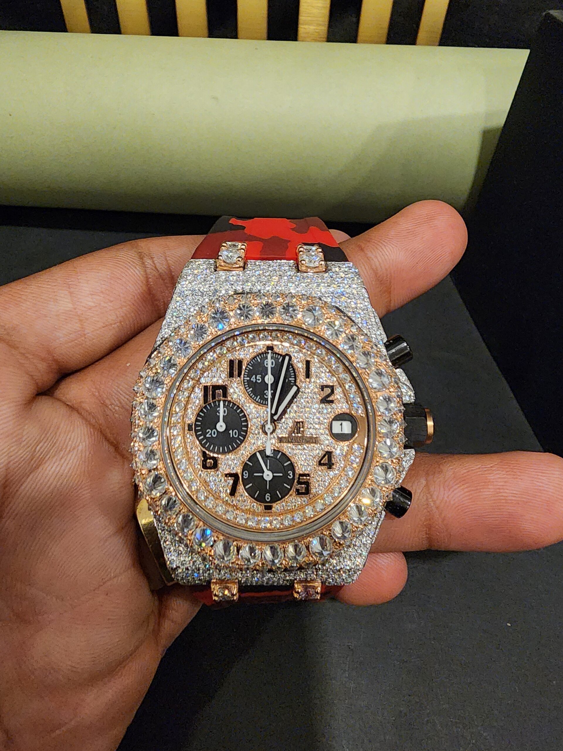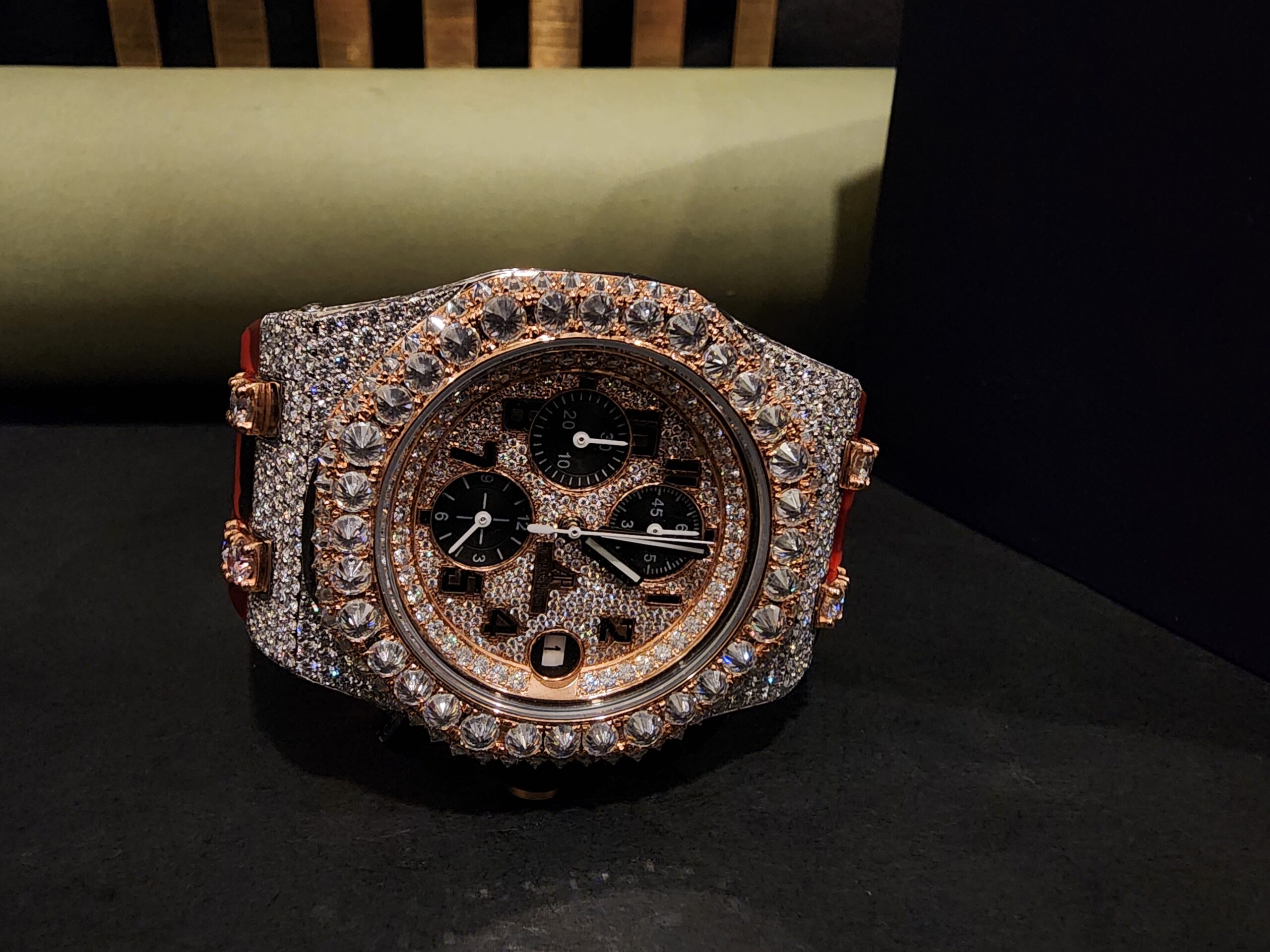 Chronograph Moissanite Diamond Watch With Latest Look Unique Diamond Watch With Red Rubber Belt