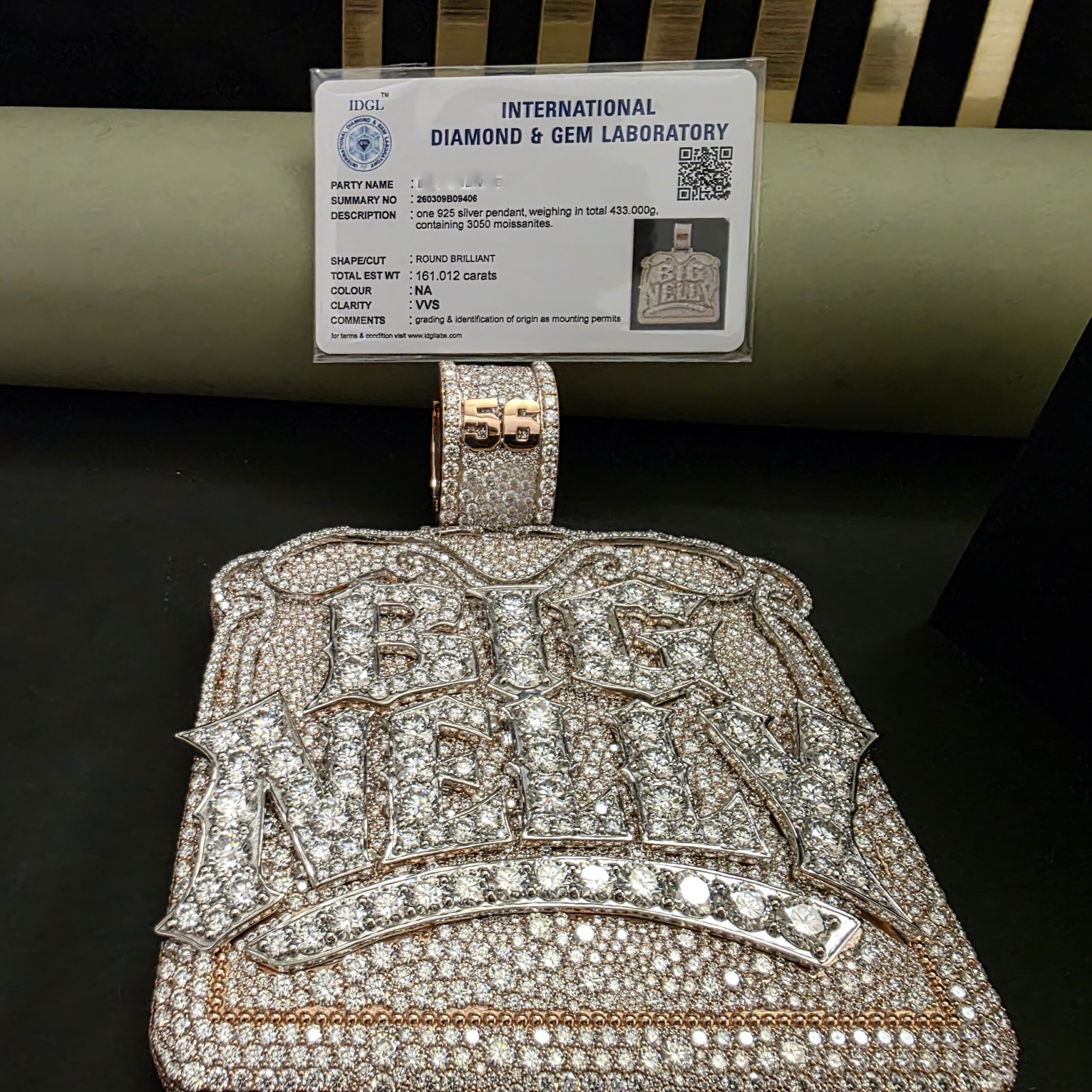 Custom BIG NELLY Hip Hop Moissanite Full Iced Out 161CT Pendant 925 Silver for Every Occasion