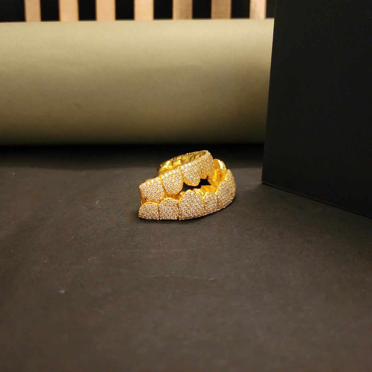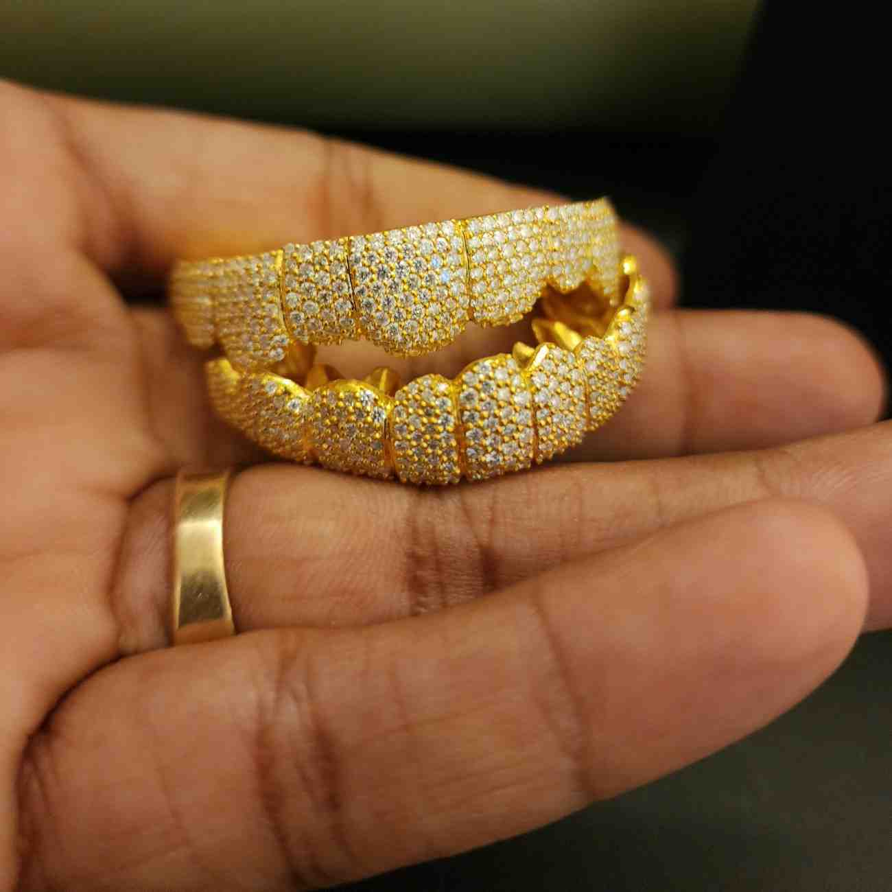 Custom Iced Out Men’s Diamond Grillz Set Top Bottom 925 Sterling Silver Gold Plated Pave Setting Hip Hop Jewelry