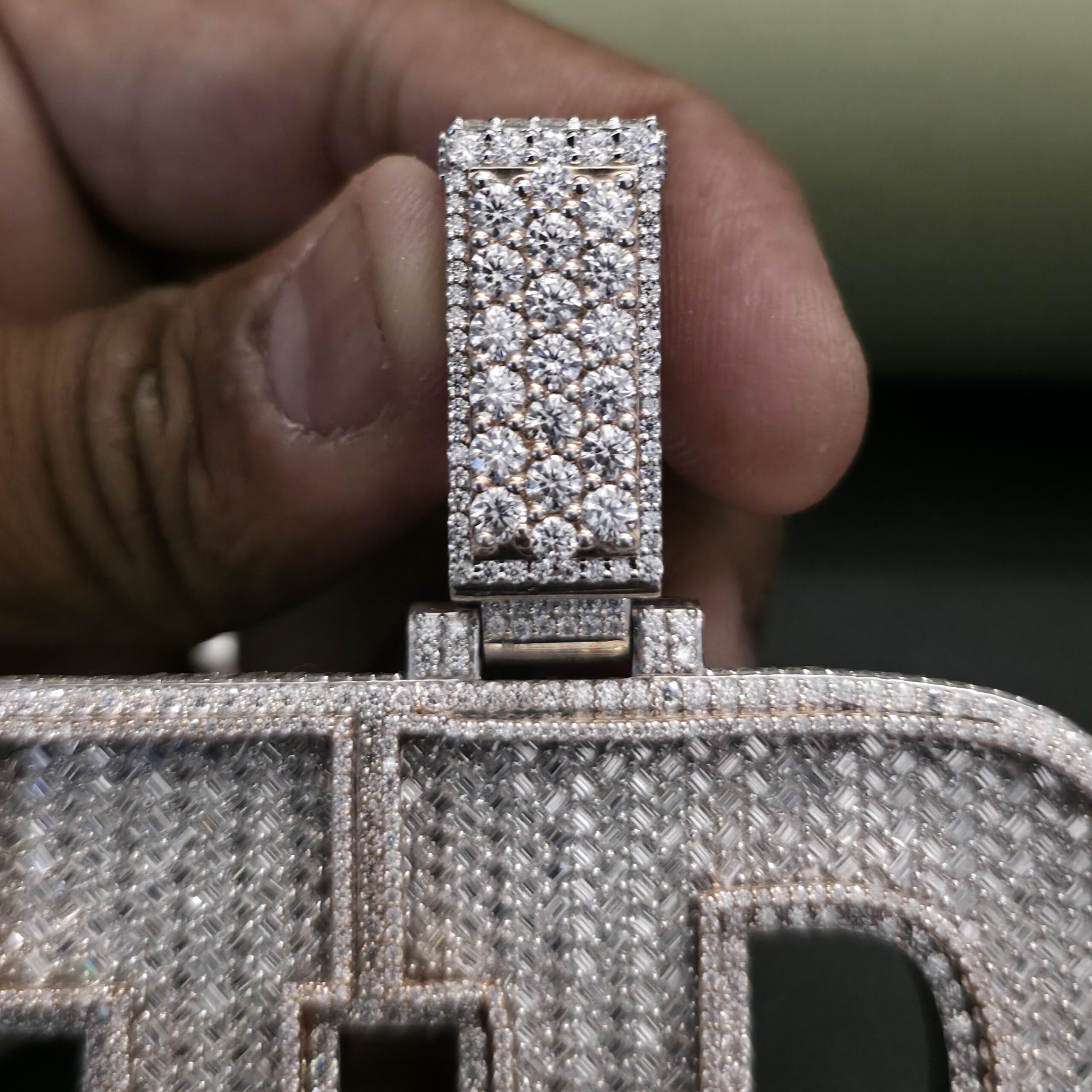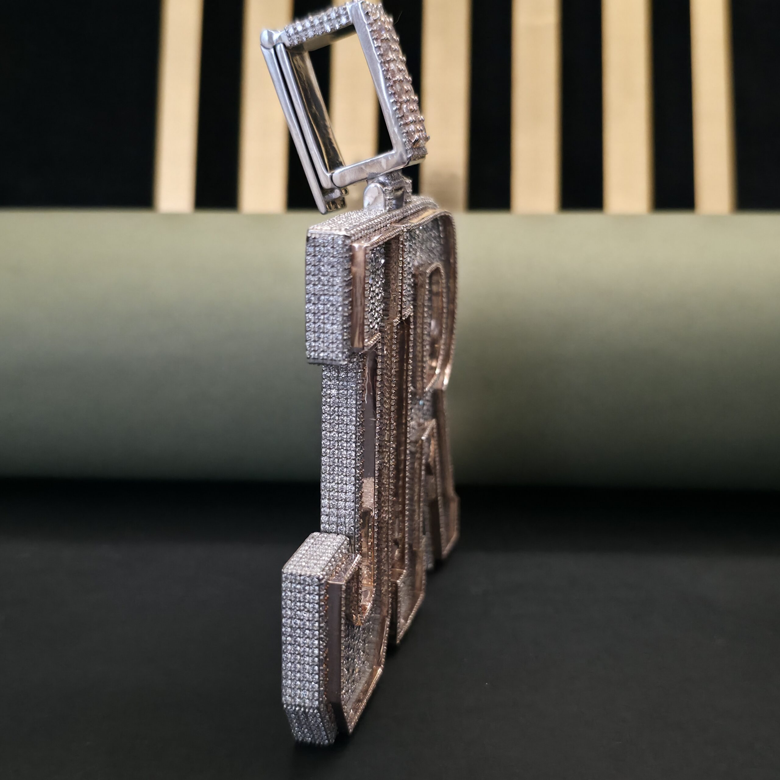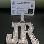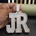 Custom JR Full Iced out Pendant With Round And Baguette Cut Diamond Silver Plated Pendant Hip Hop Jewelry