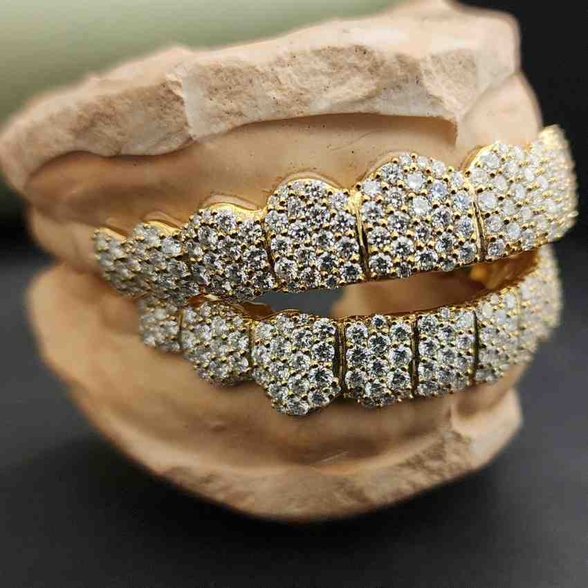 Customized DOPE JEWELLS Iced Diamond Grillz Set 925 Sterling Gold Plated Pave Setting Hip Hop Jewelry