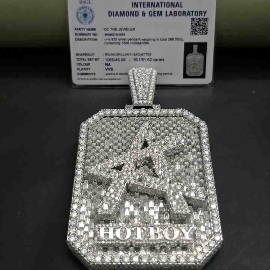 Customized Iced Out HOTBOY Pendant Stainless Steel Moissanite Sterling Silver Plated 107.7 CT Hip Hop Pendant