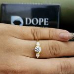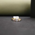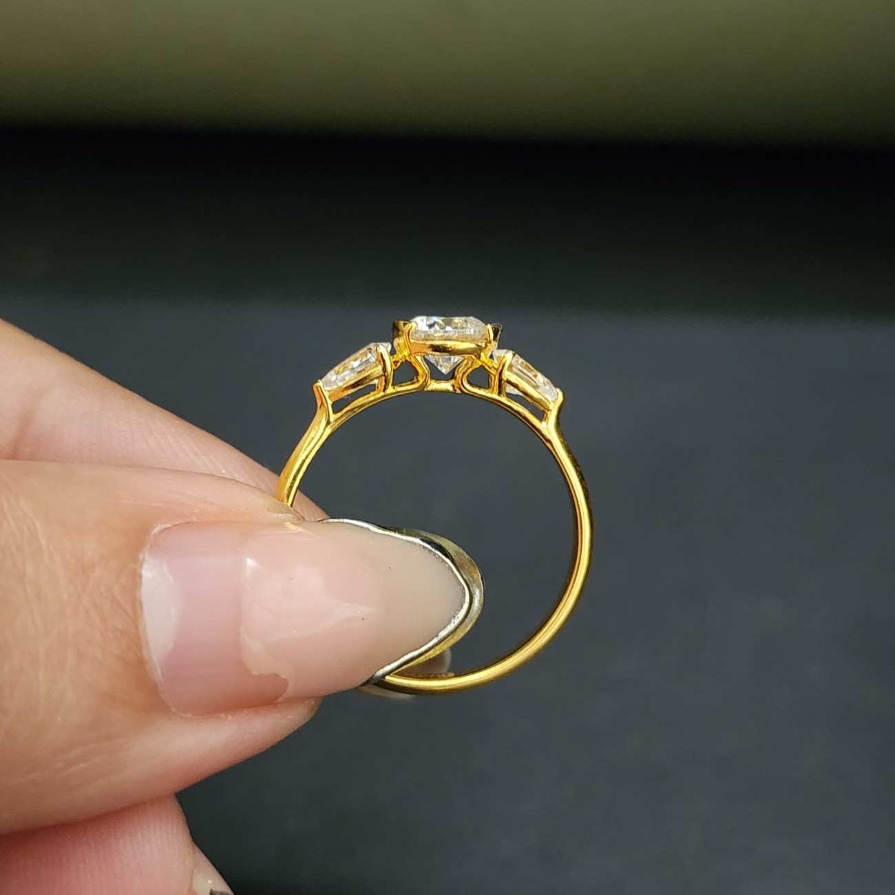 Elegant Three Stone Round And Pear Cut Moissanite Engagement Ring in 18KT Solid Gold Pave Setting for Valentine’s Gift