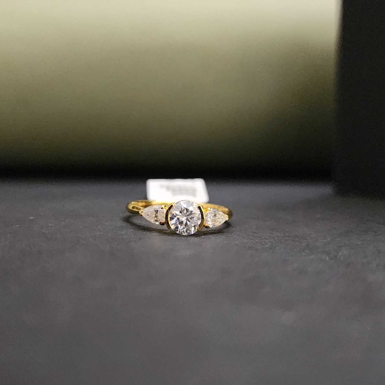 Elegant Three Stone Round And Pear Cut Diamond Ring