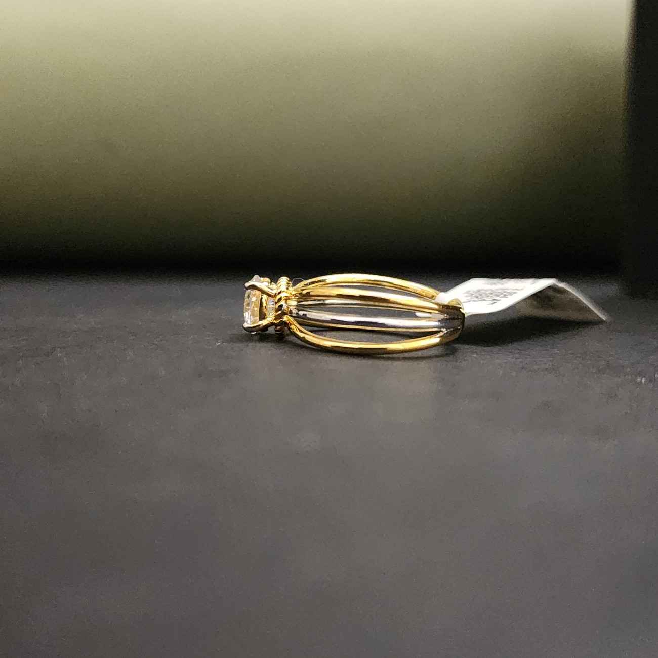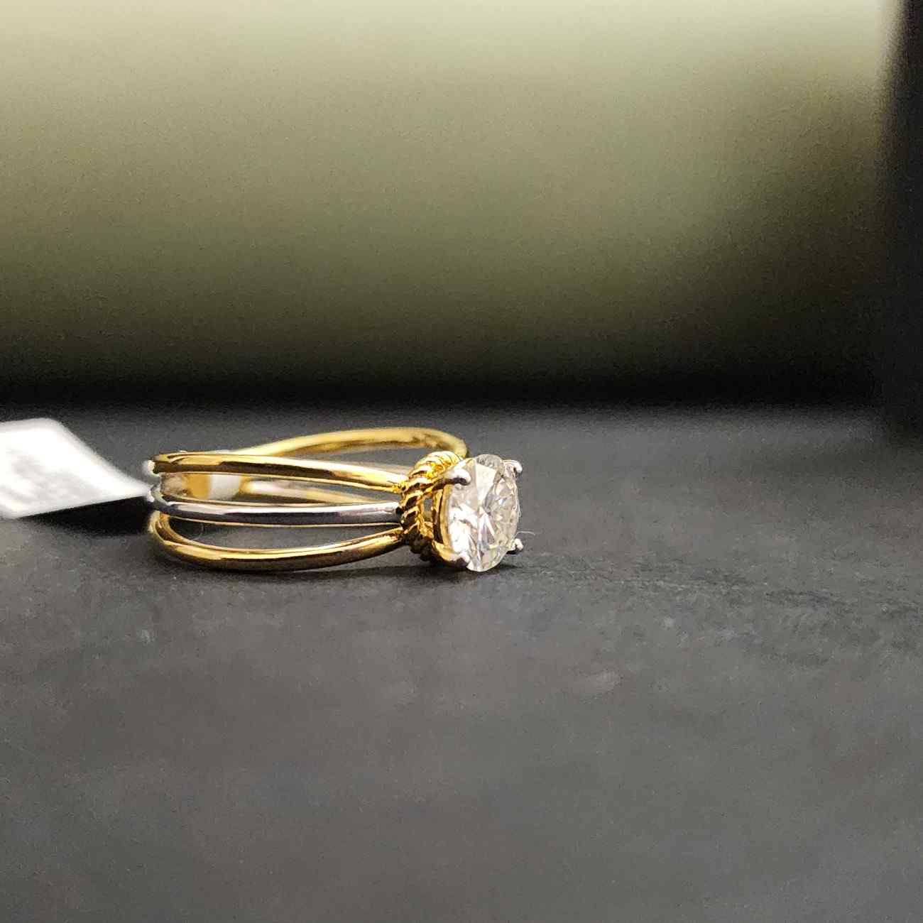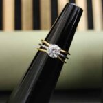 Exclusive Three Row Yellow Gold Round Cut Engagement Ring