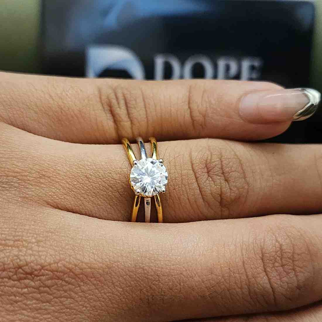 Exclusive Three Row Yellow Gold Round Cut Moissanite Engagement Ring with 925 Sterling Silver Pave Setting For Gift