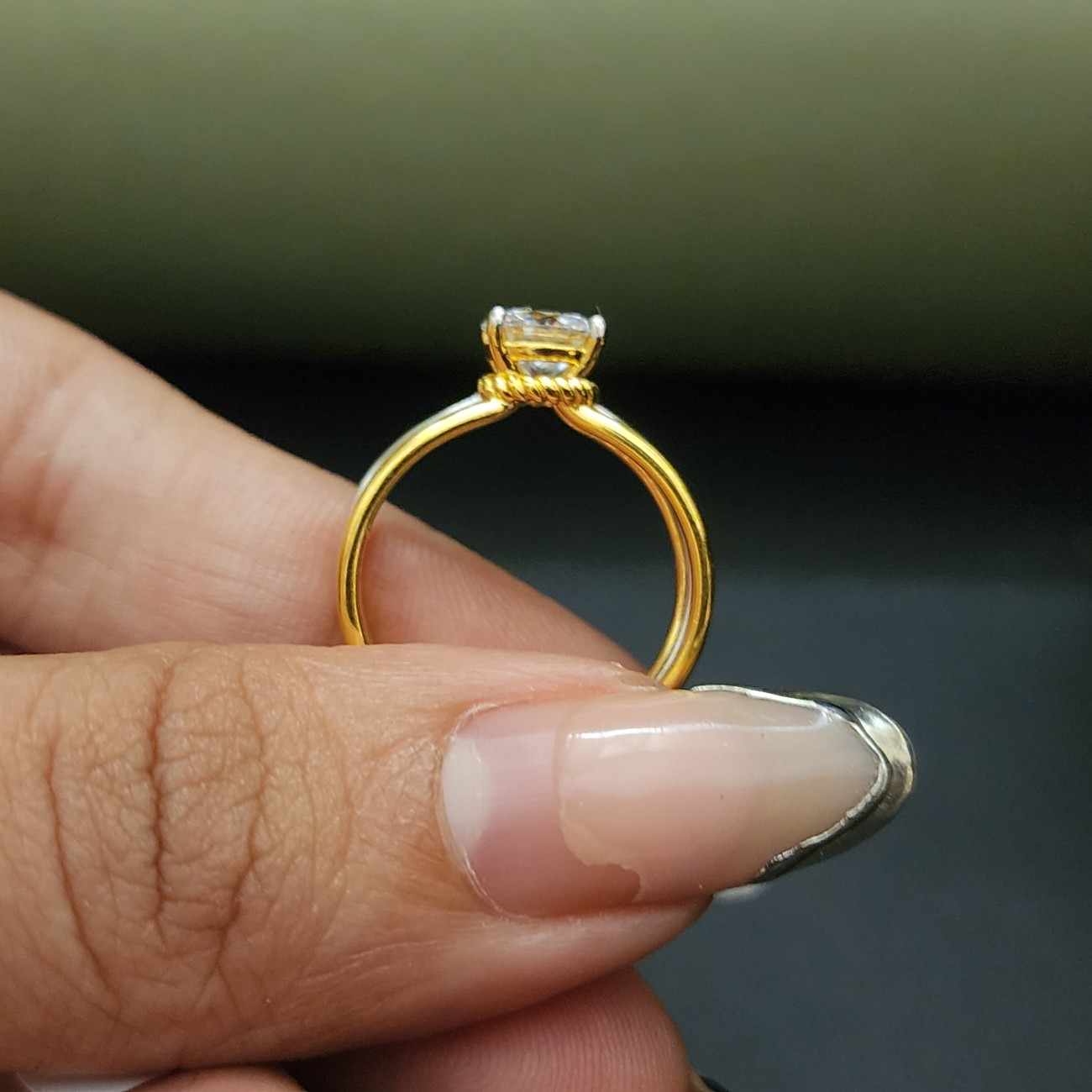 Exclusive Three Row Yellow Gold Round Cut Moissanite Engagement Ring with 18K Gold Plated Pave Setting For Gift