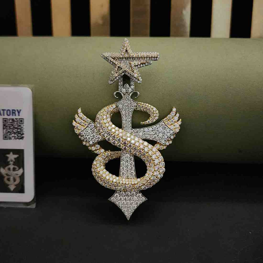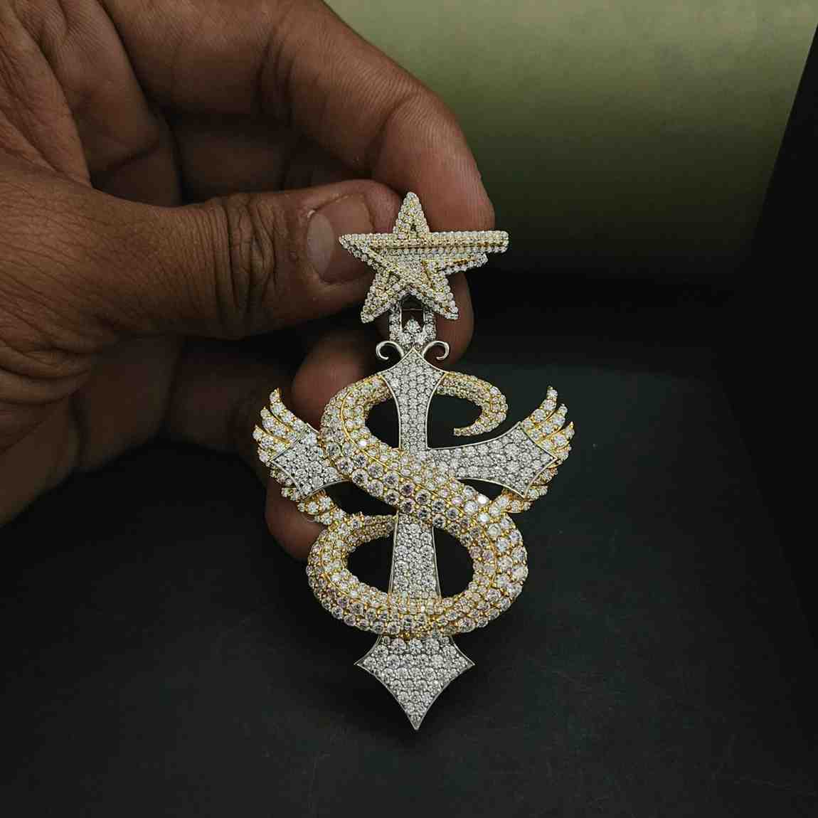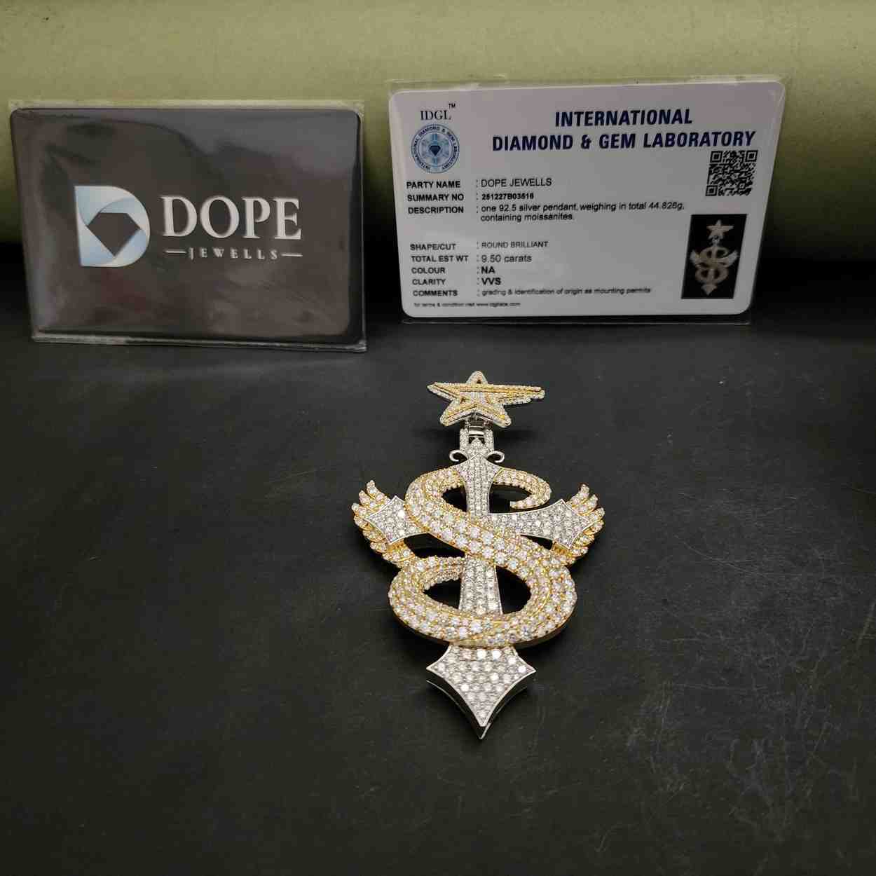 Iced S Letter Cross Pendant Star Bail Customized Letter Stainless Steel Moissanite Platinum Plated Sterling Silver