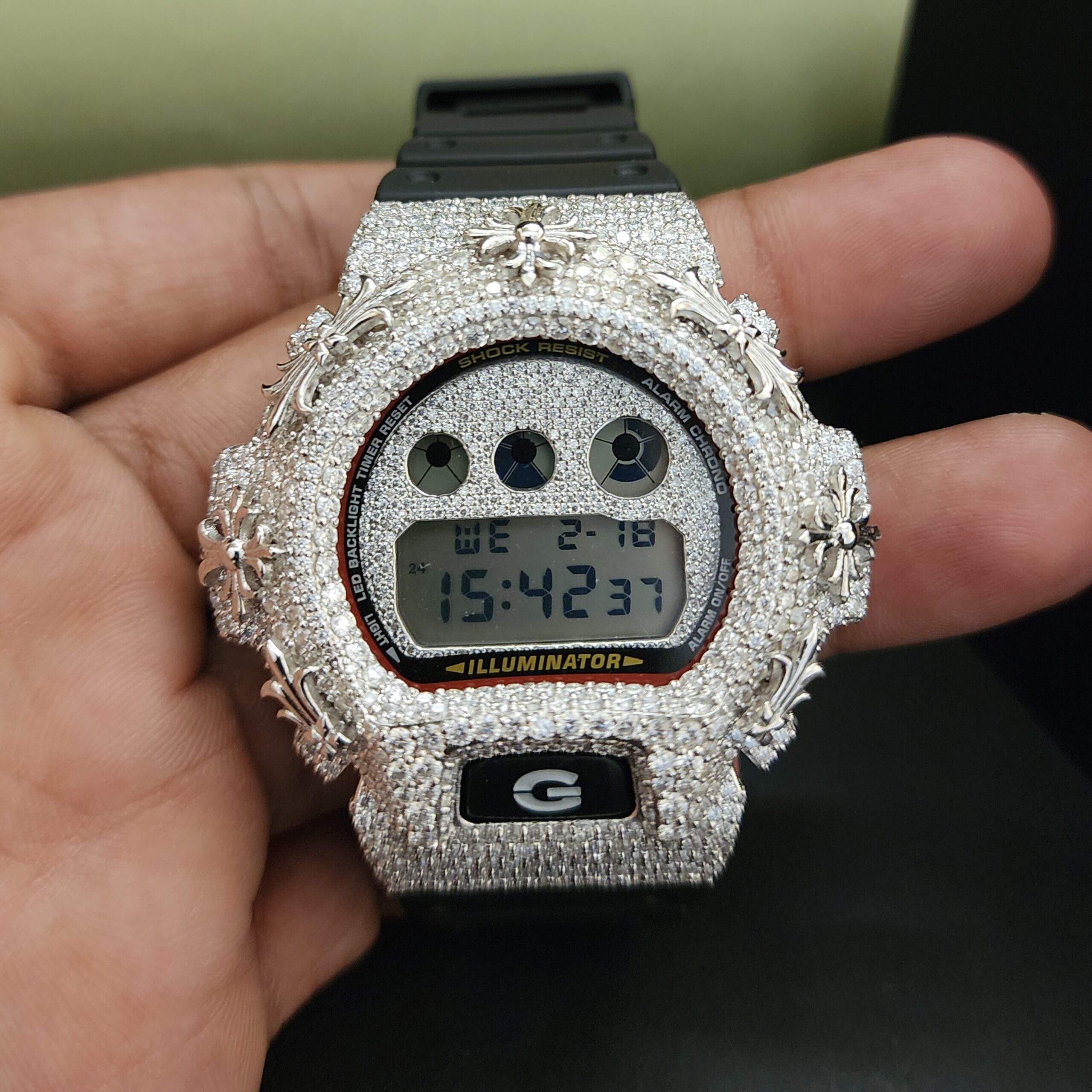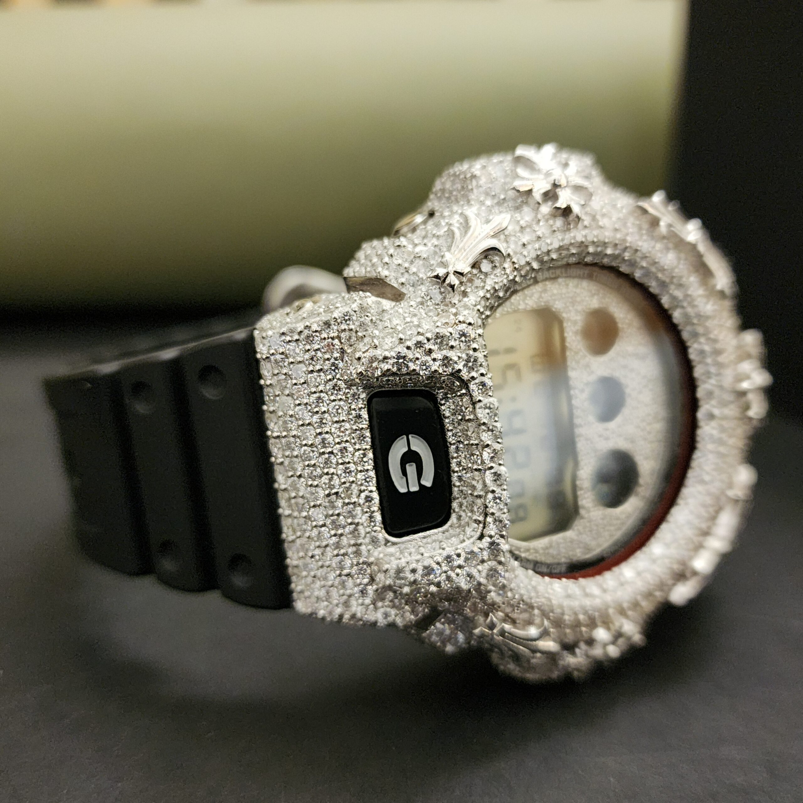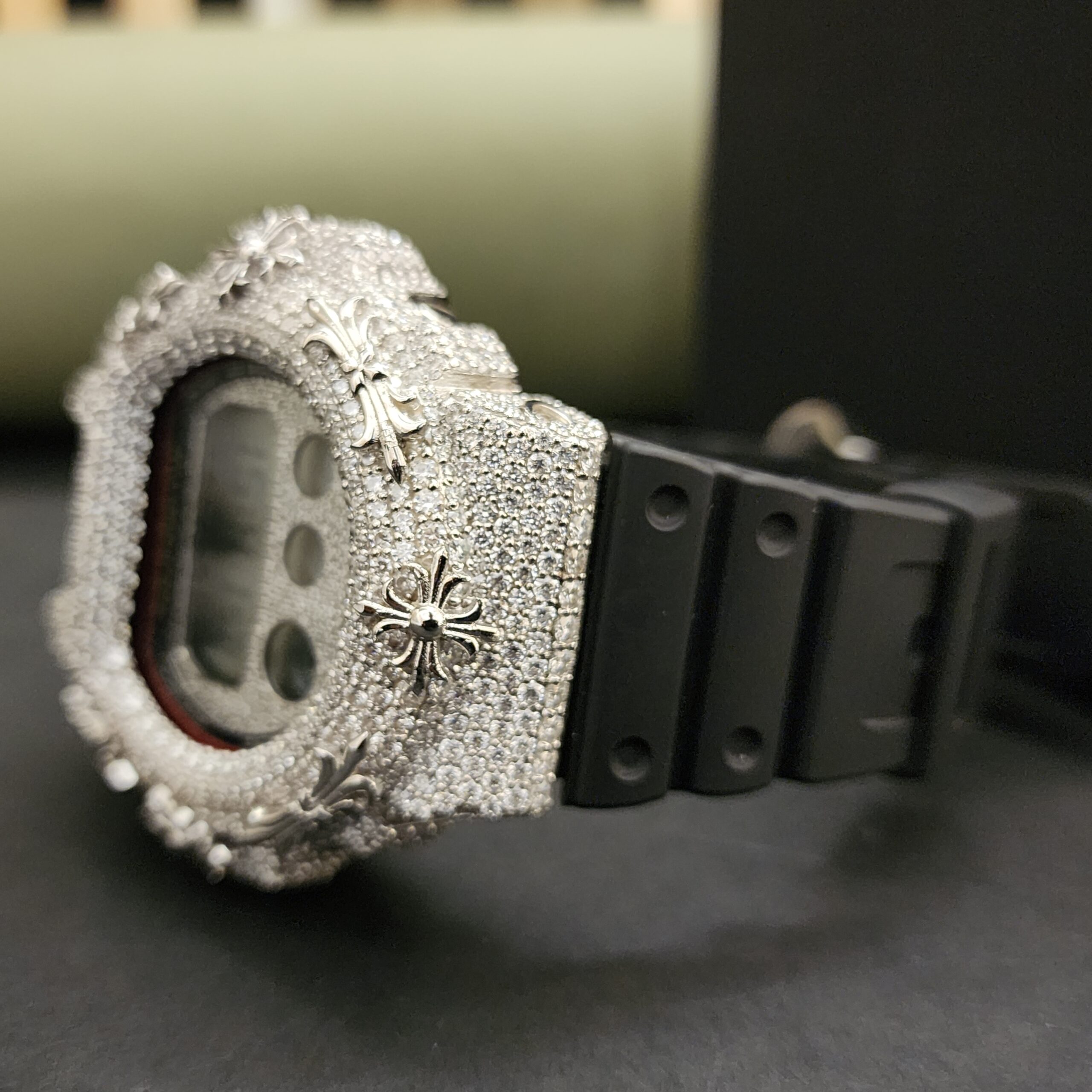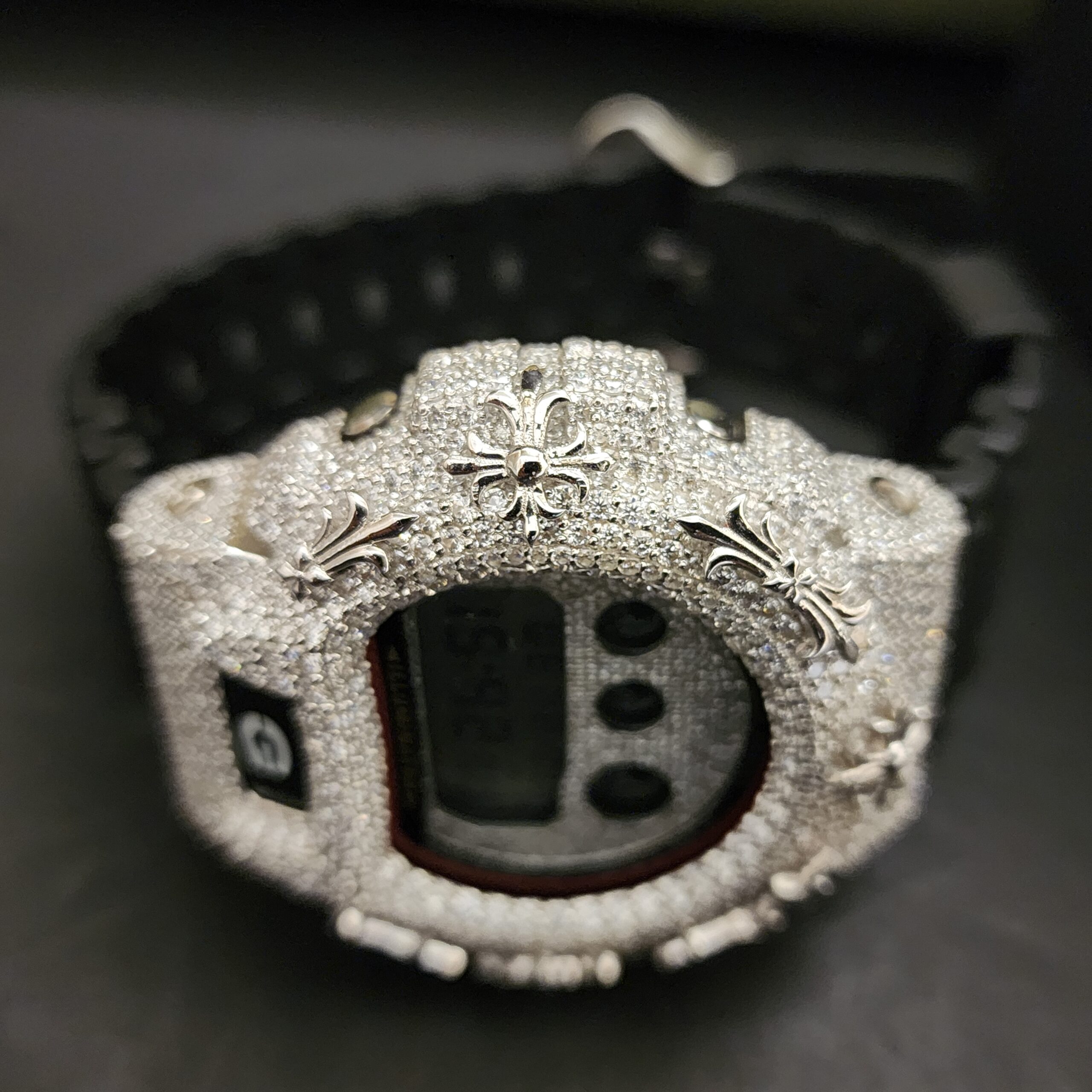 Luxury Fashion Diamond Watch with Stainless Steel Case Half Iced Black Rubber Band