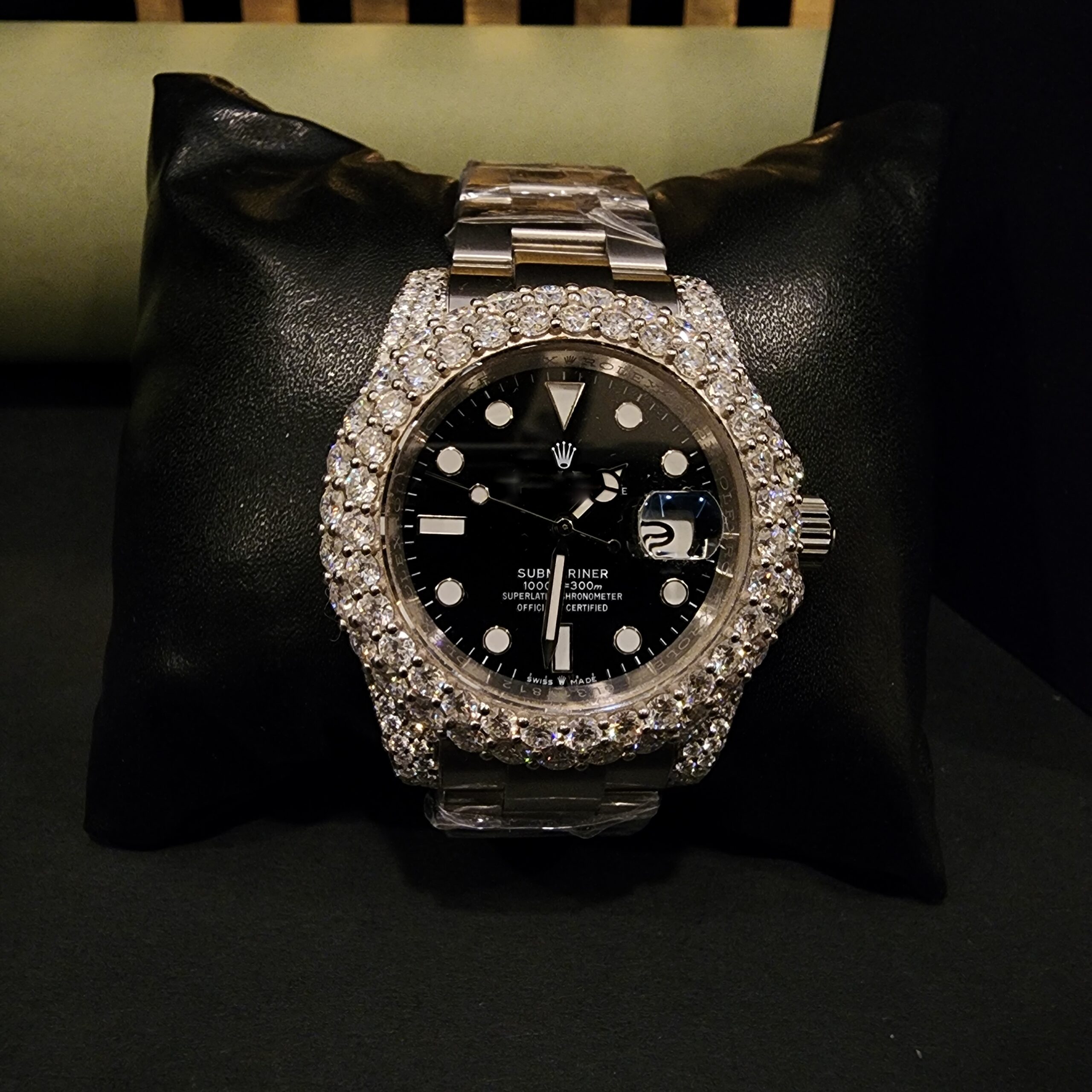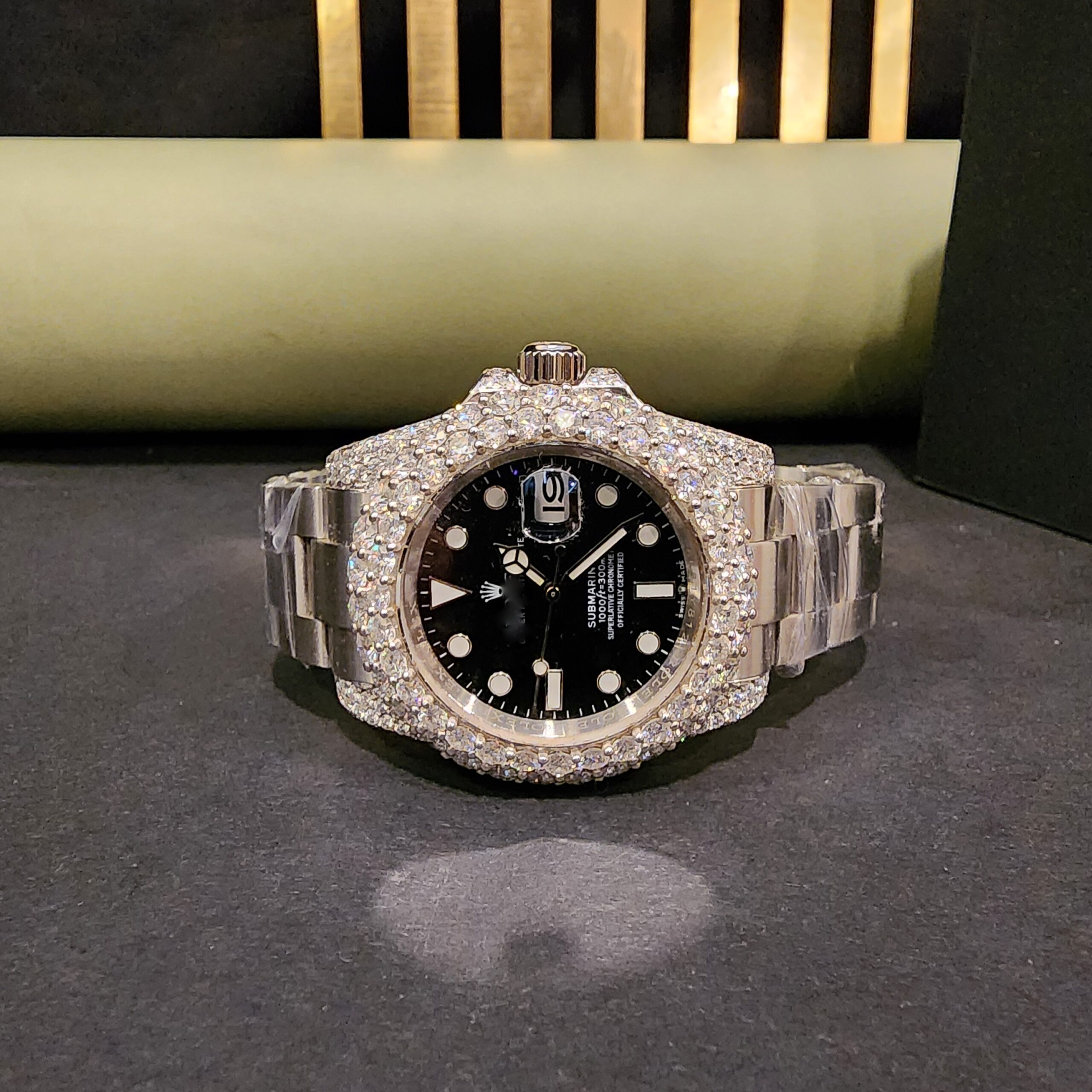 Luxury Half Iced out Diamond Watch with for Swiss Quartz Movement Stainless Steel Band