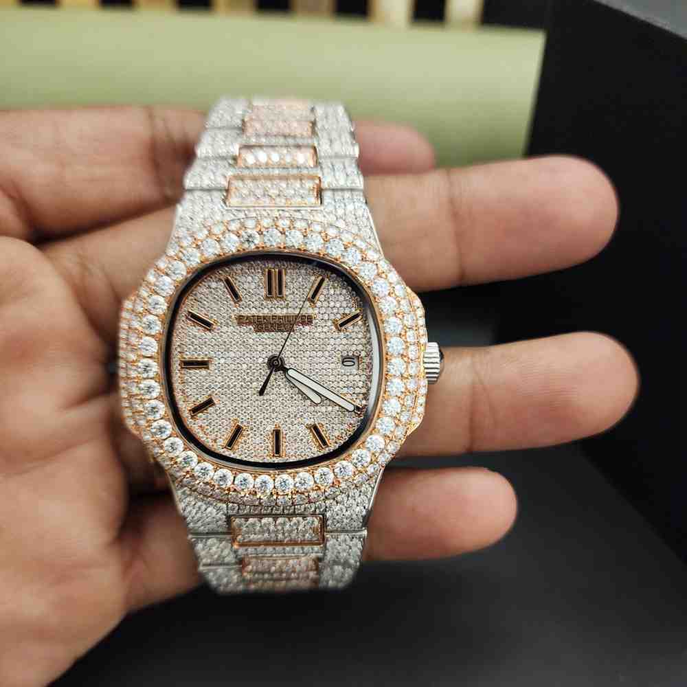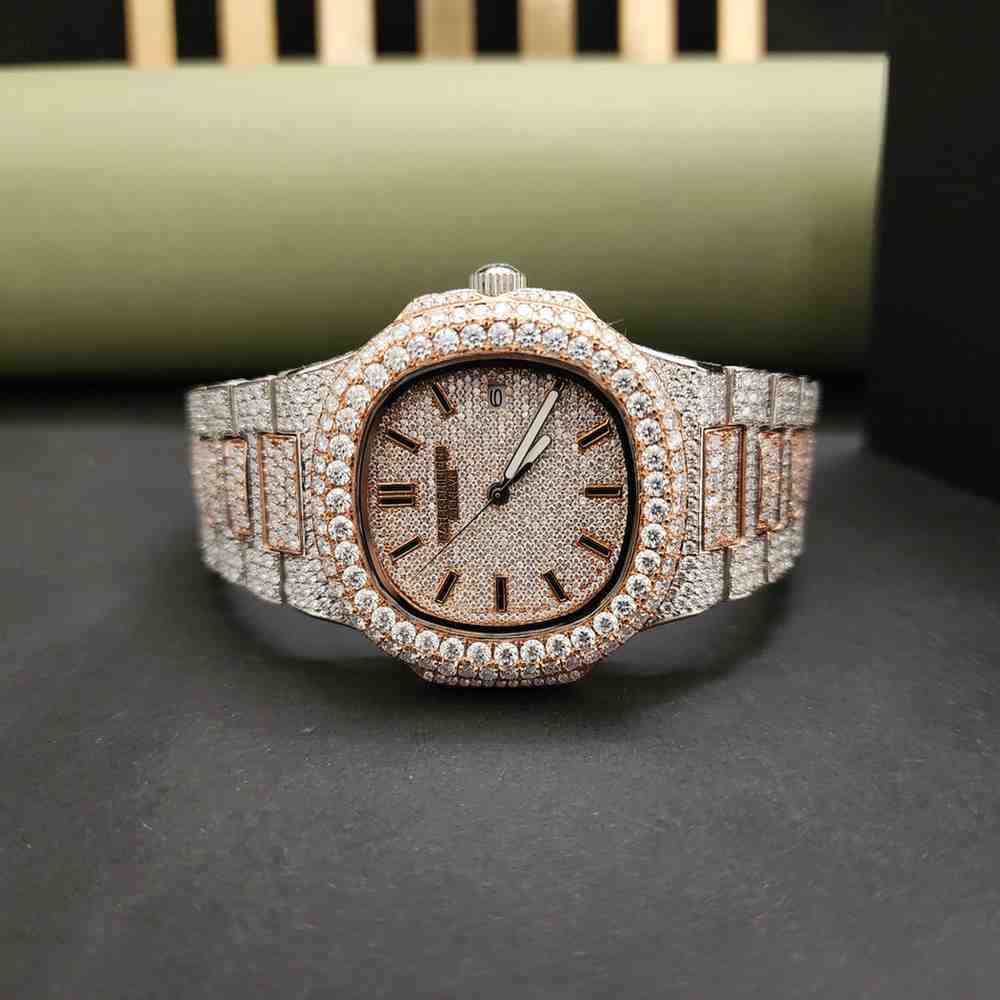 Luxury Moissanite Full Iced Out Diamond Watch With Baguette Diamond Dial Swiss Movement For Every Occasion