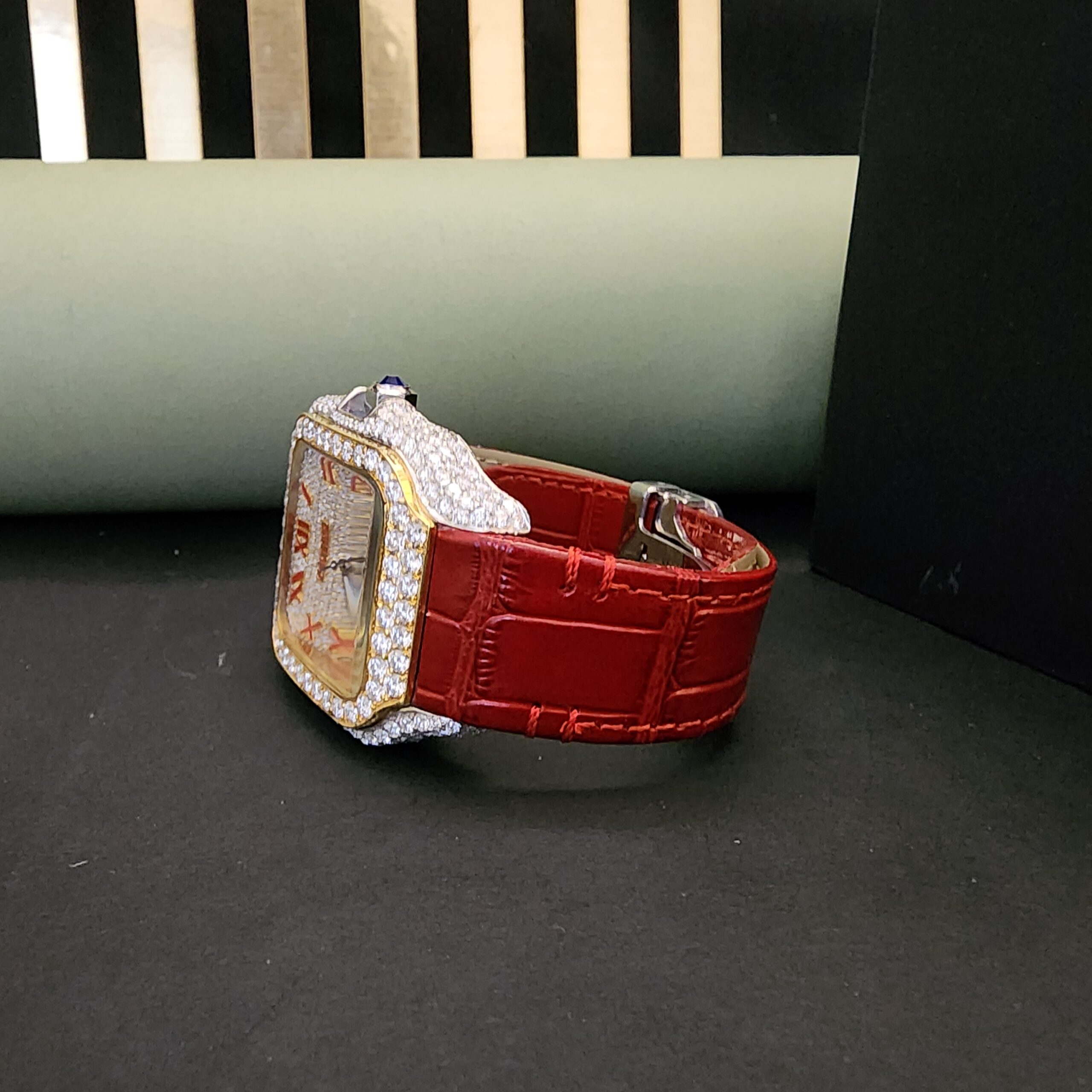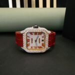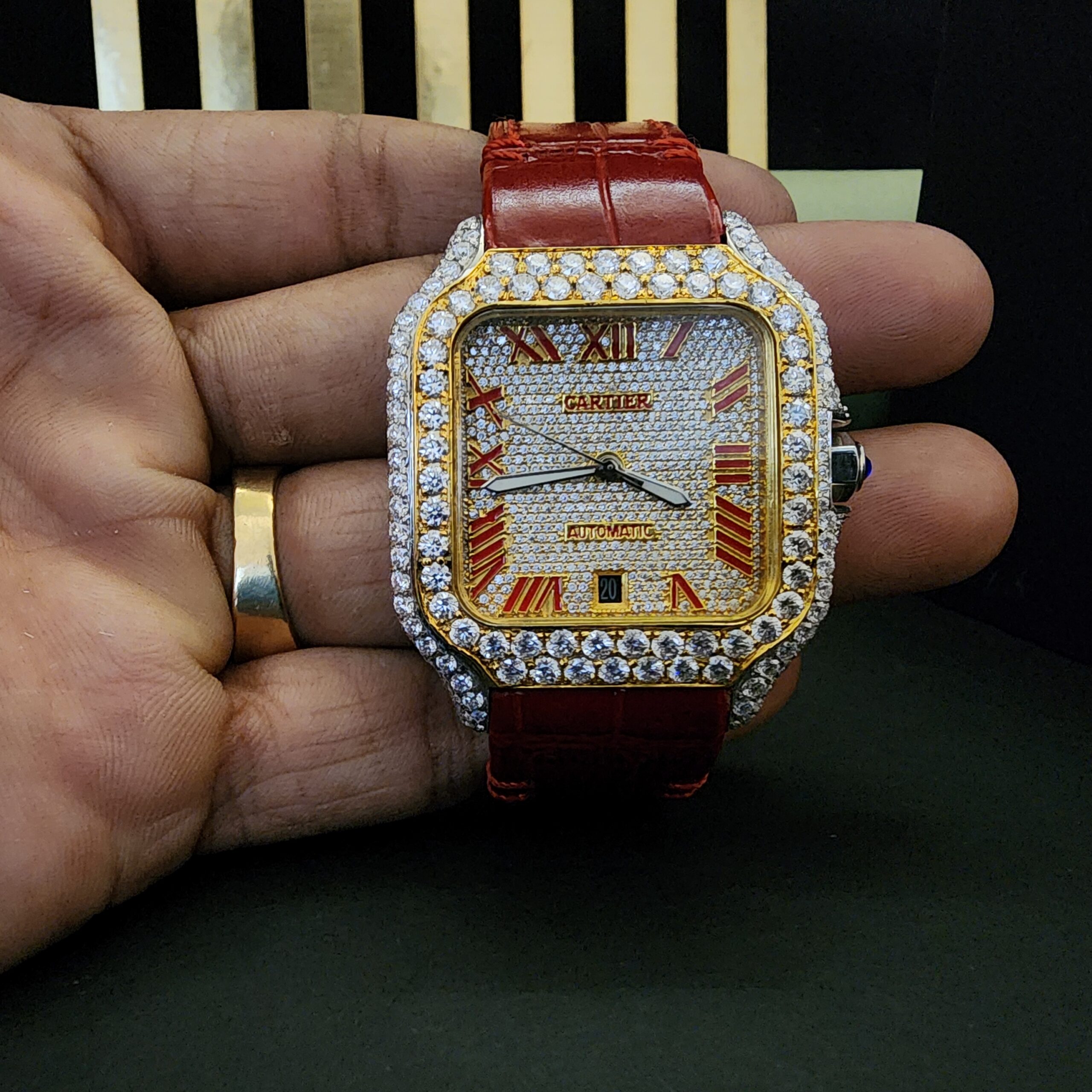 Moissanite Diamond Watch With Latest Look Unique Diamond Watch With Red Rubber Belt