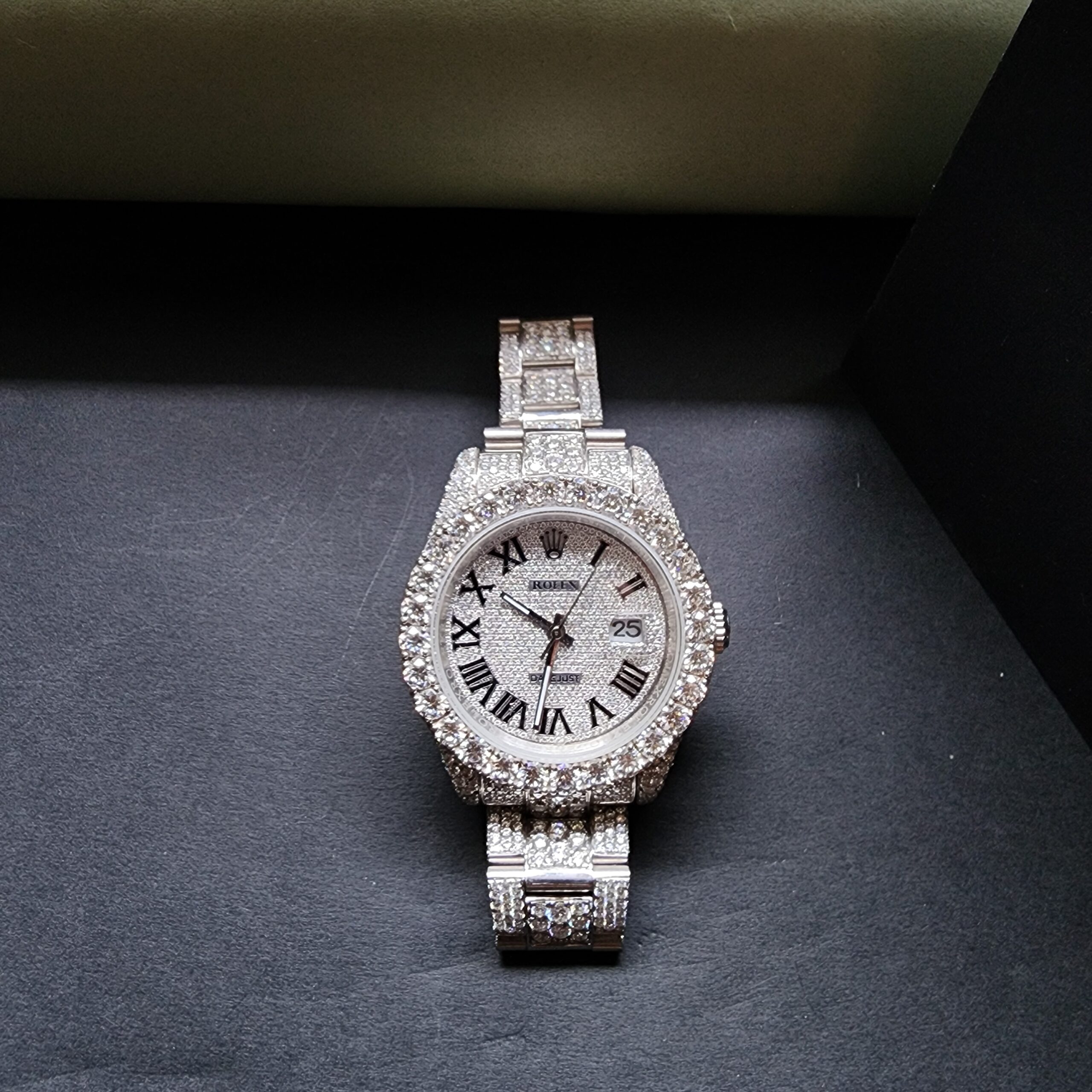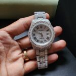 Mossianite Luxury Diamond round Dial Watch JAPANESE Quartz Movement with Oyster Band White Dual Tone Fashionable