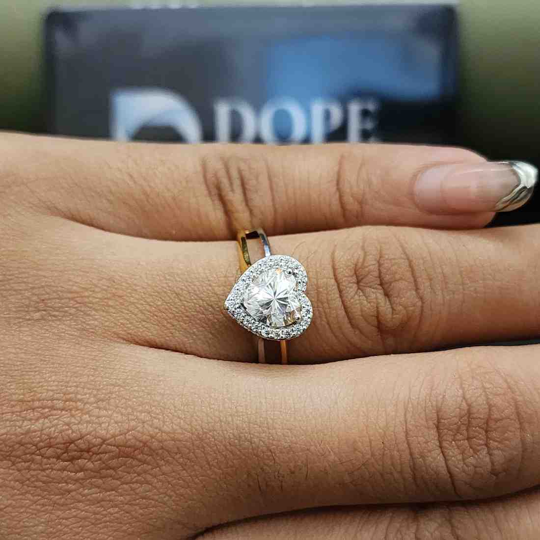 Pretty Heart Shape Moissanite Engagement Ring with Pave Setting in 18KT Solid Gold for Your Loved One