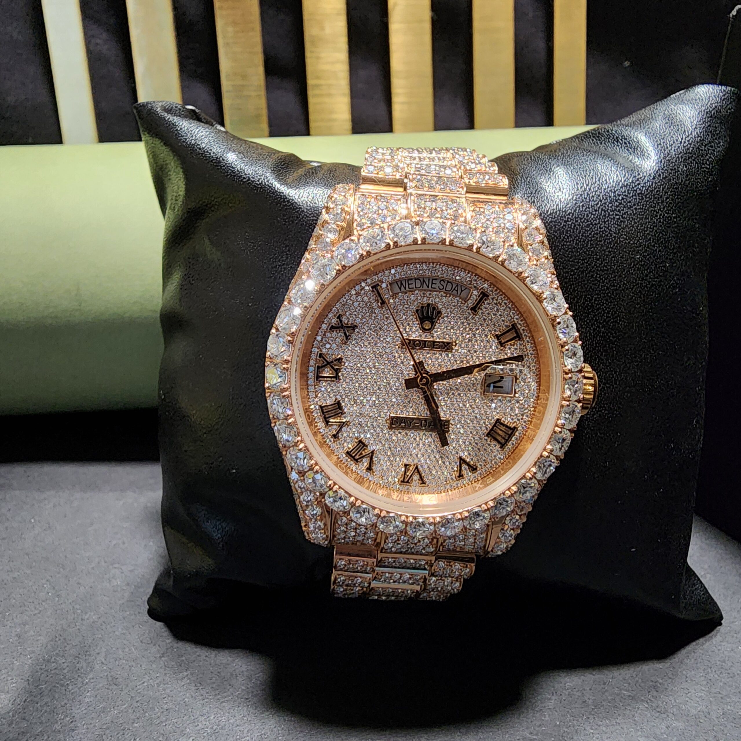 Roman dial two tone yellow and white mossianite diamond watch full iced out diamond president band watch in swiss movement