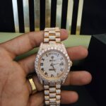 Roman dial two tone yellow and white mossianite diamond watch full iced out diamond president band watch in Japanese movement