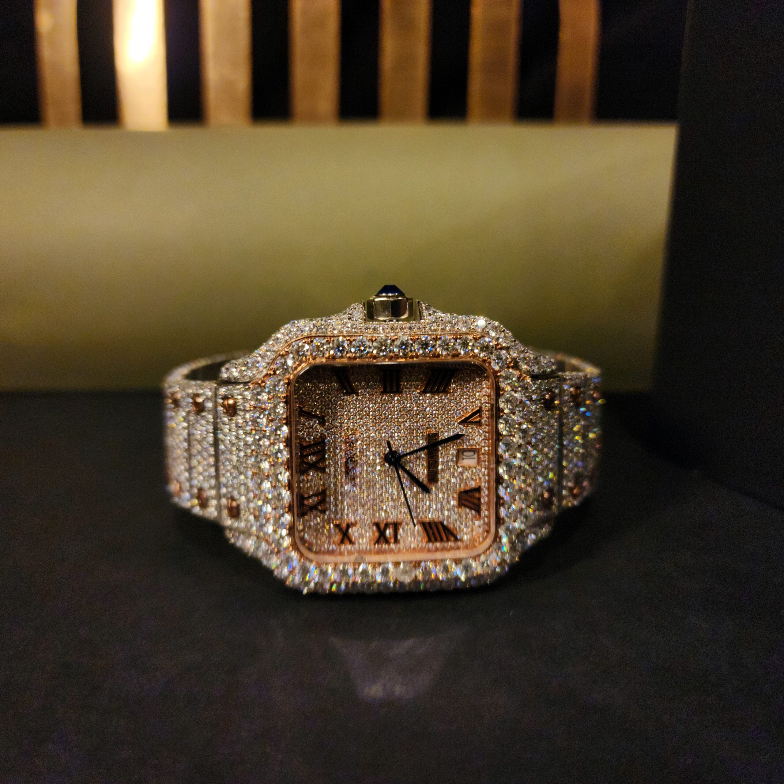 Roman square dial moissianite Two Color Tone diamond full iced out swiss movement hip hop diamond watch