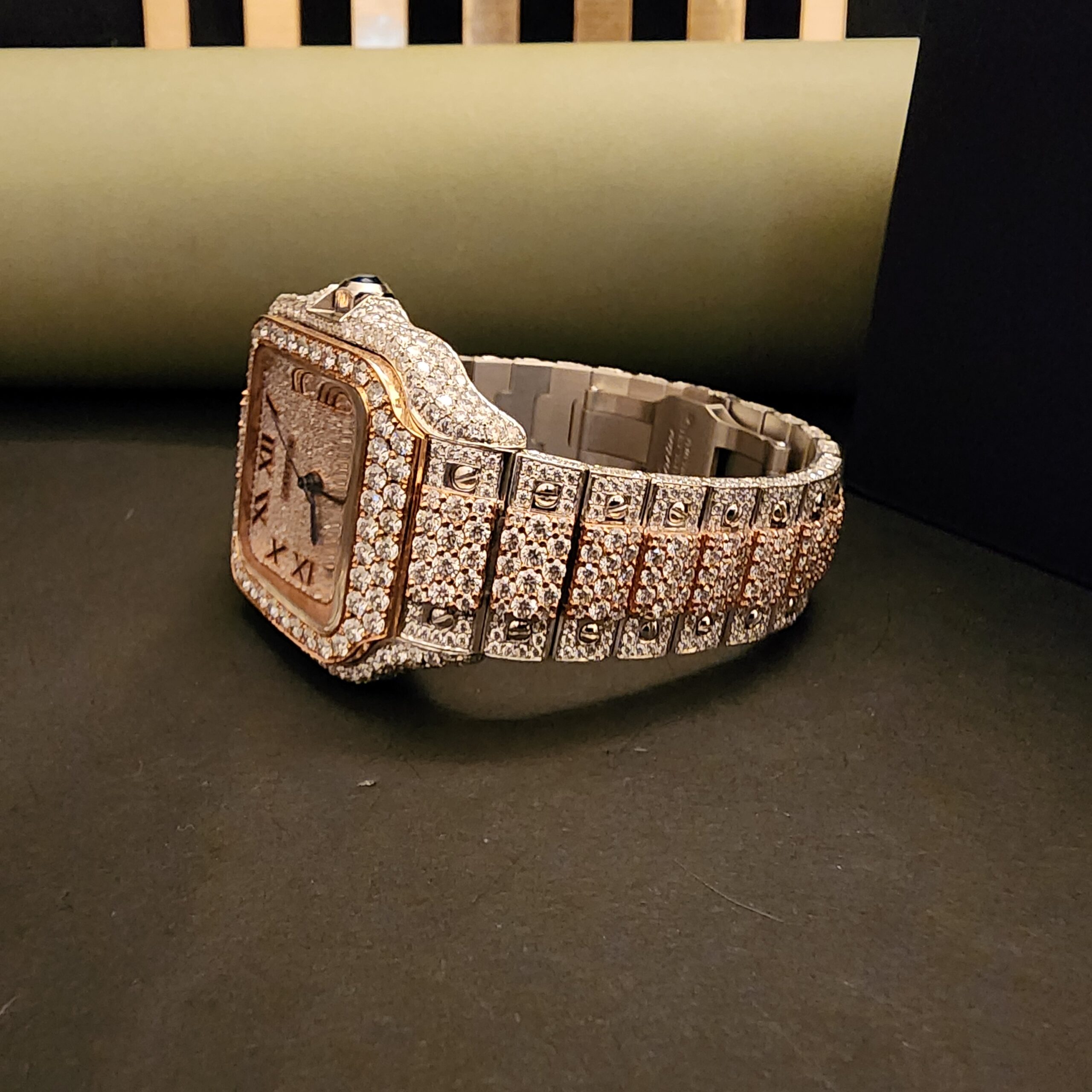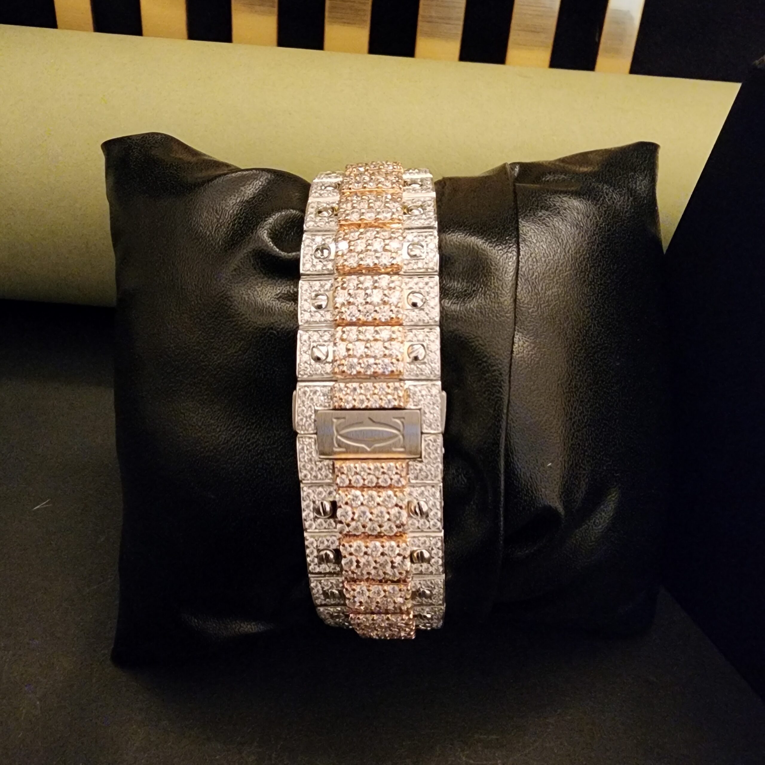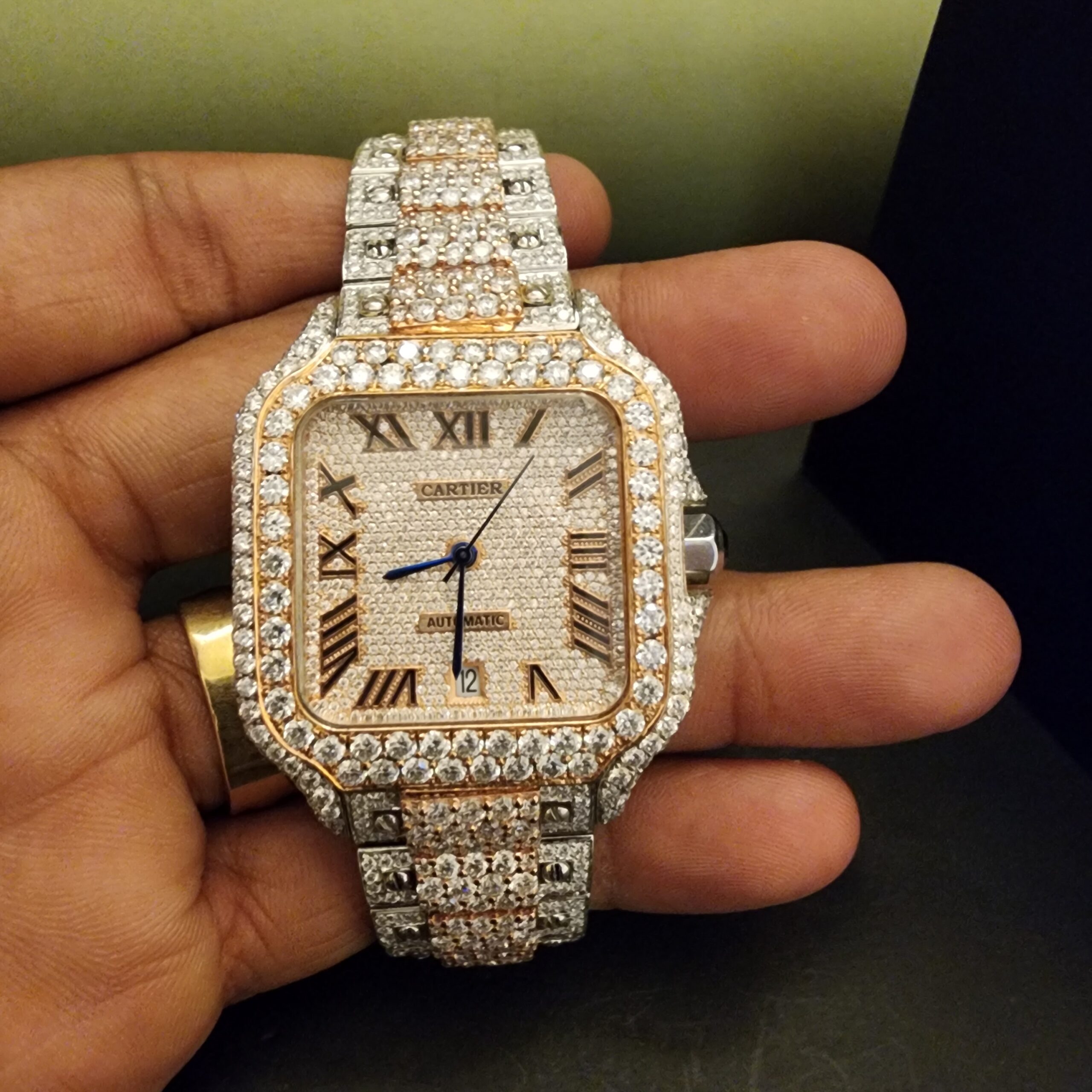 Roman square dial moissianite Two Color Tone Rose And White diamond Watch