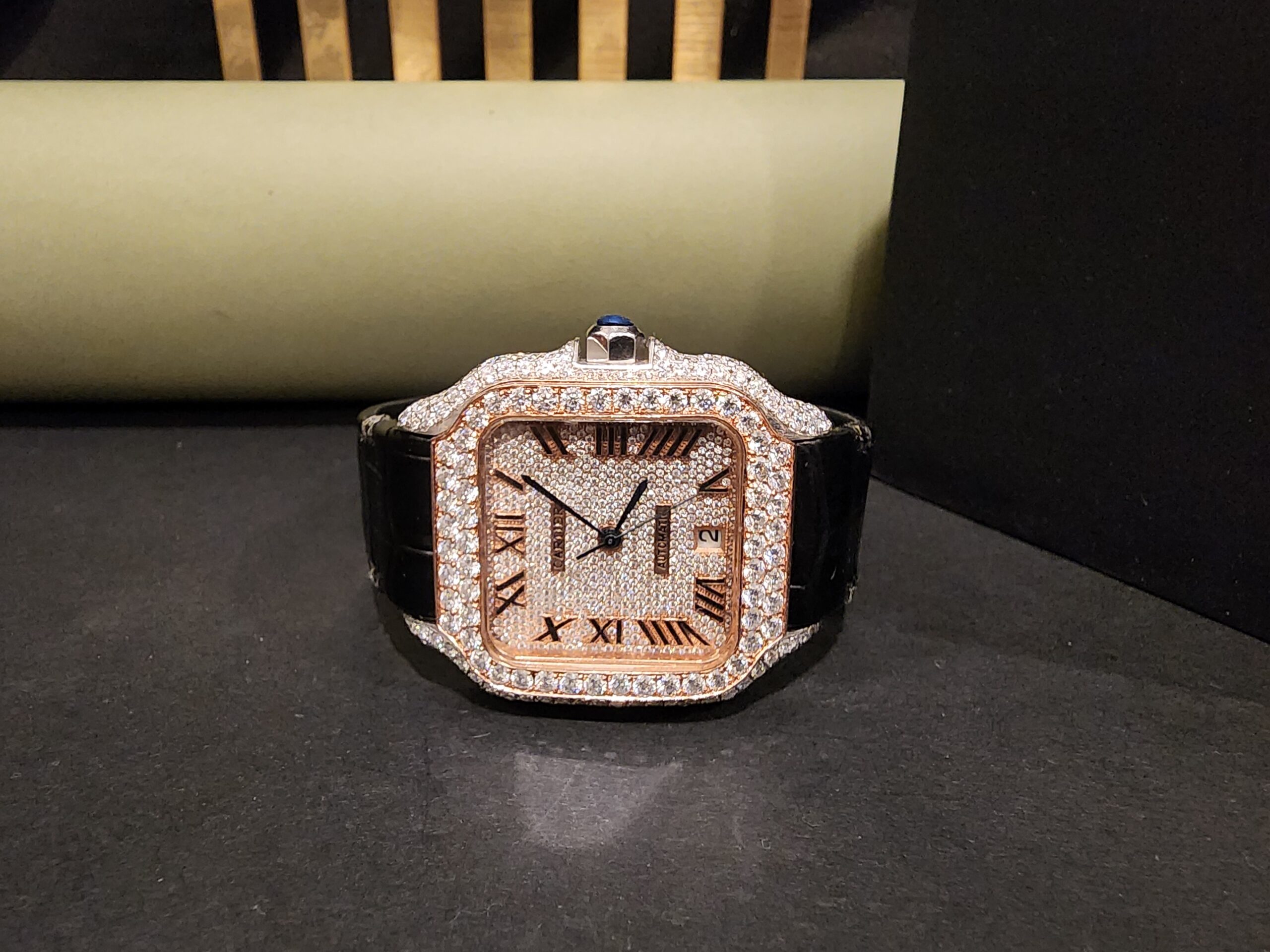 Roman square dial moissianite diamond Half iced out swiss movement With Rubber Band diamond watch