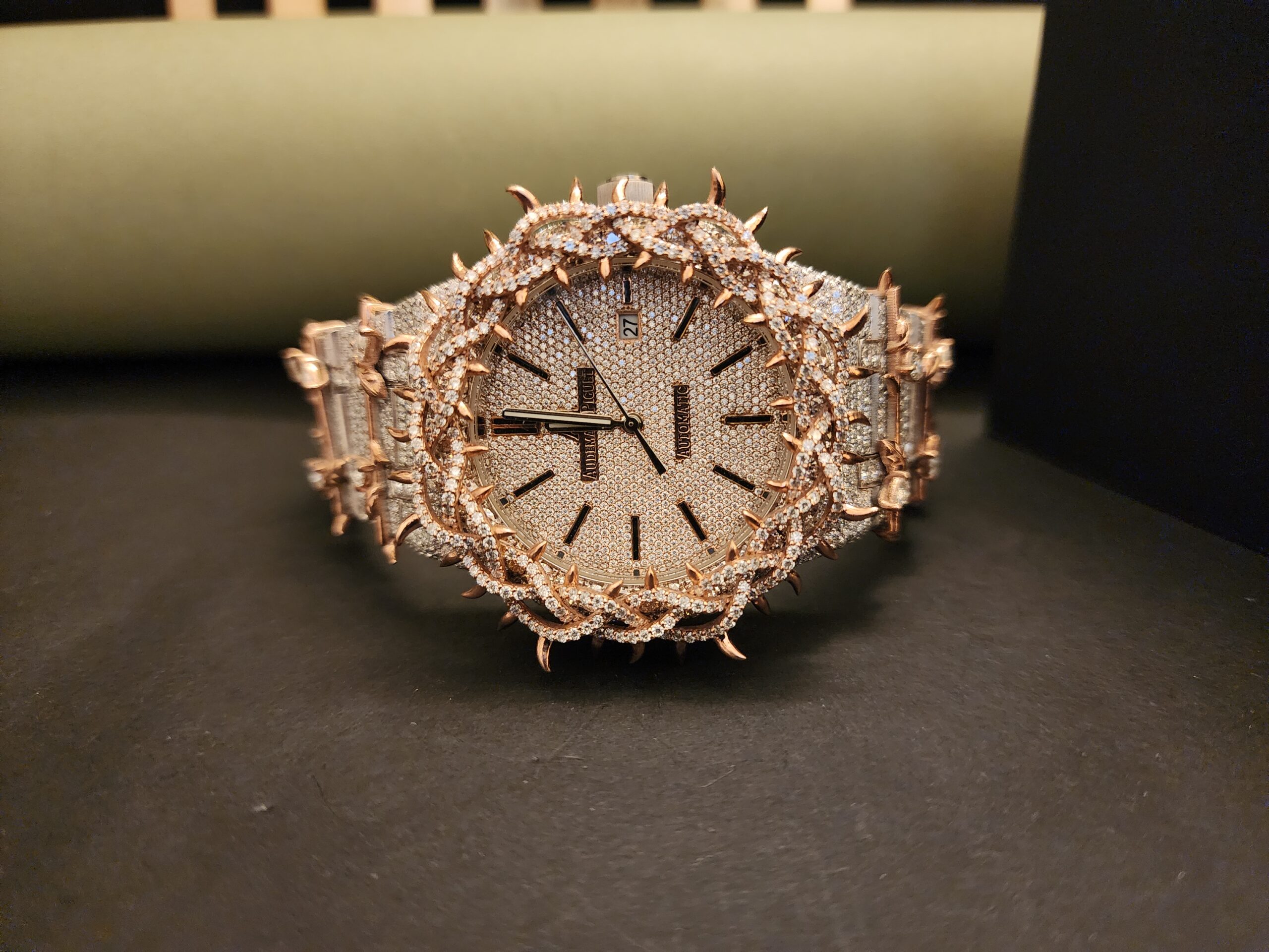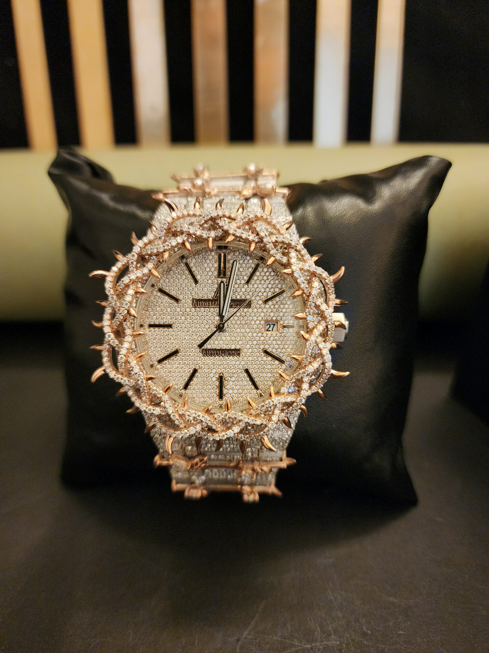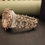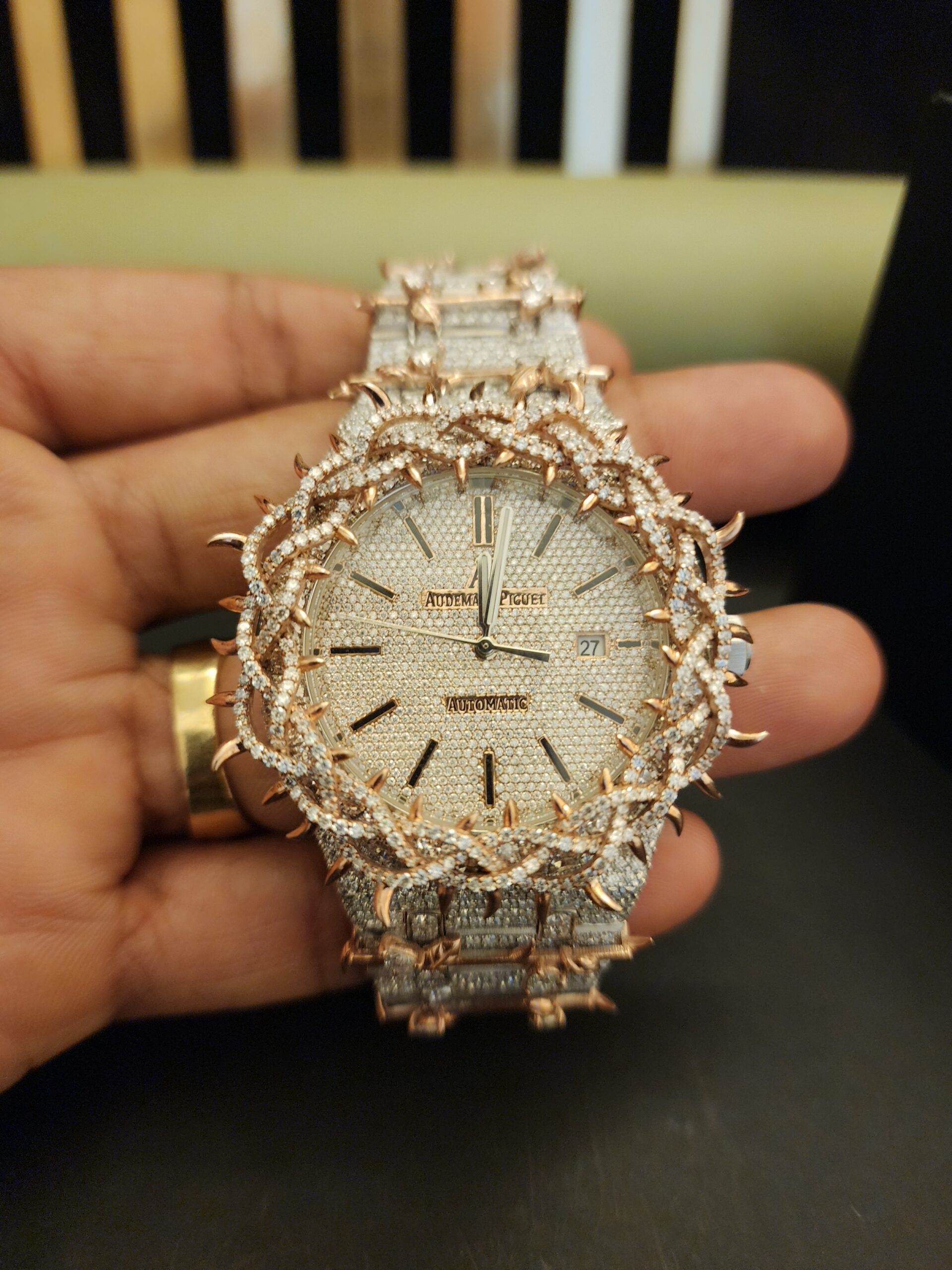Round dial moissianite diamond with thrones full iced out swiss movement hip hop diamond watch With Baguette Diamond Numerals