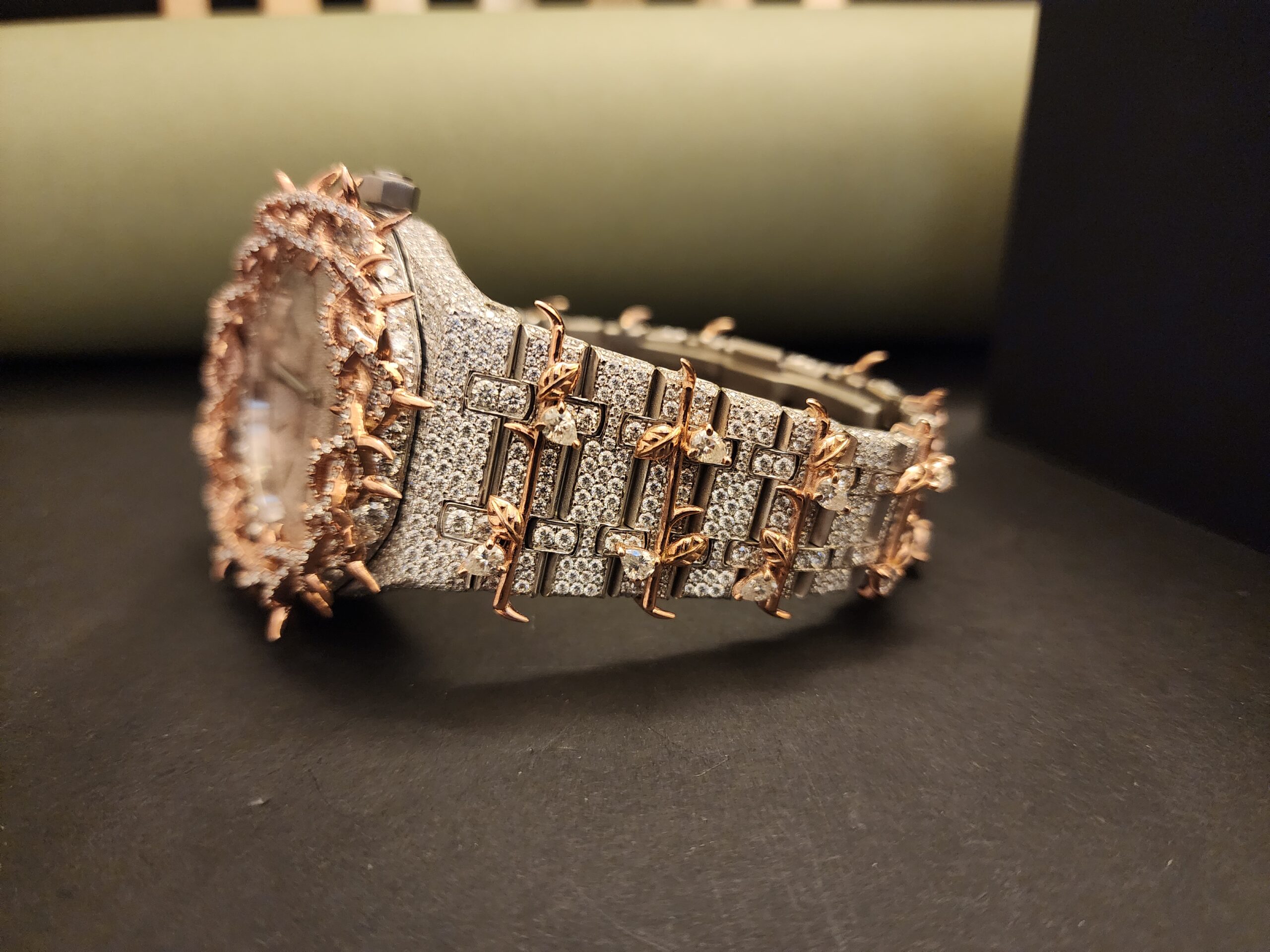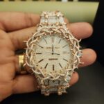 Round Dial Luxury Japanese Quartz Movement Hip Hop Diamond Watch Moissanite with Full Thrones iced out With Baguette Diamond Numerals