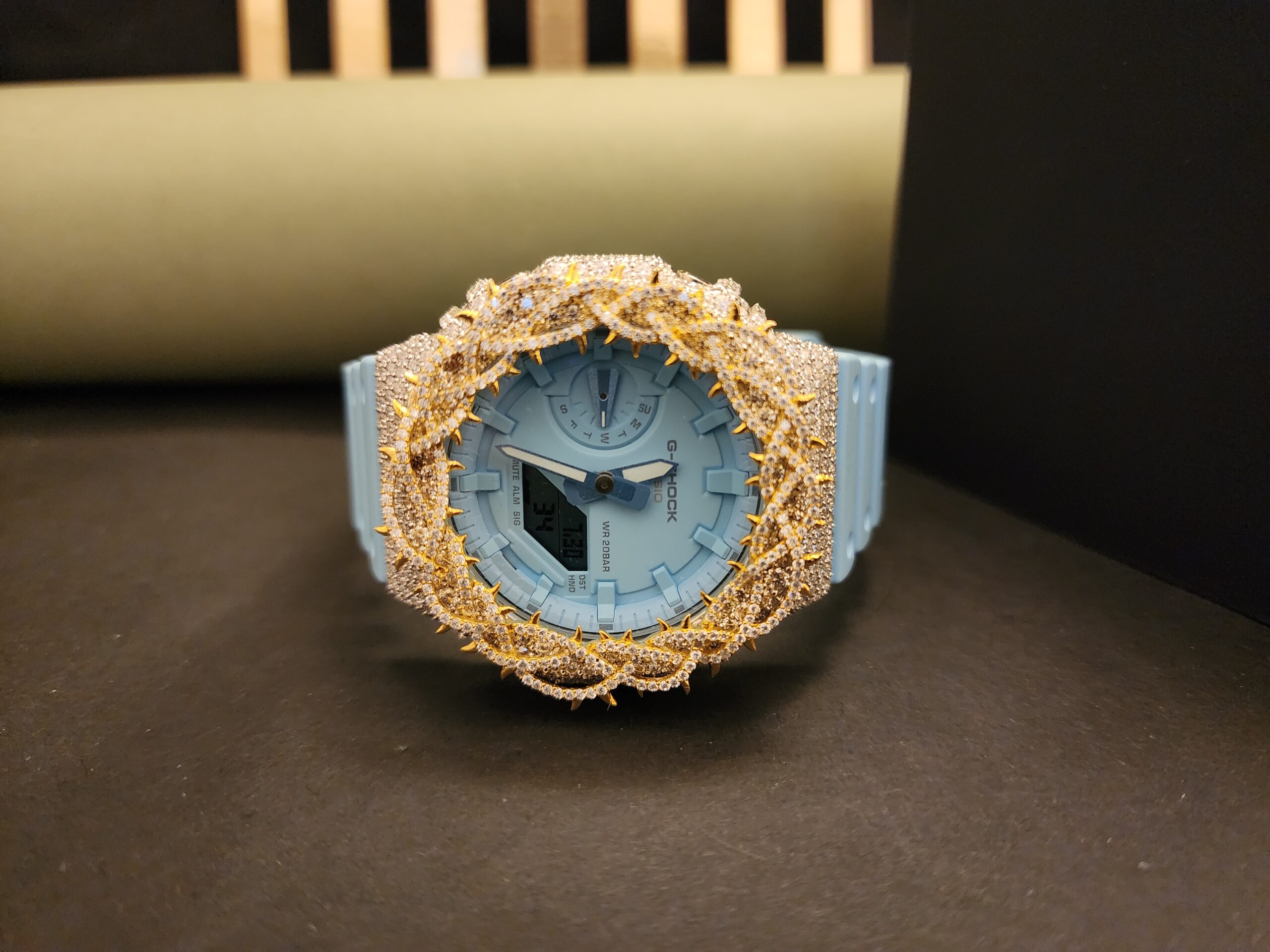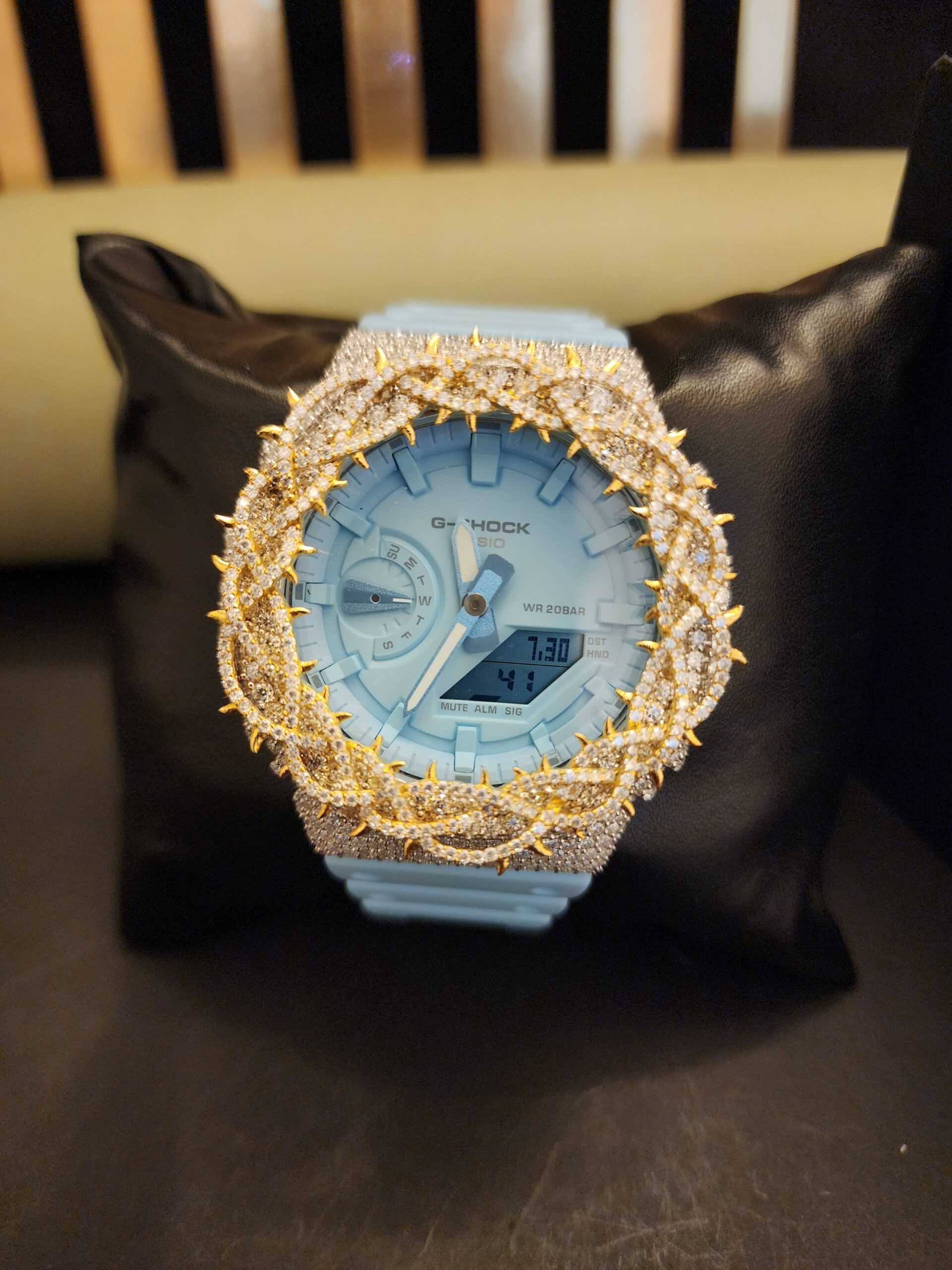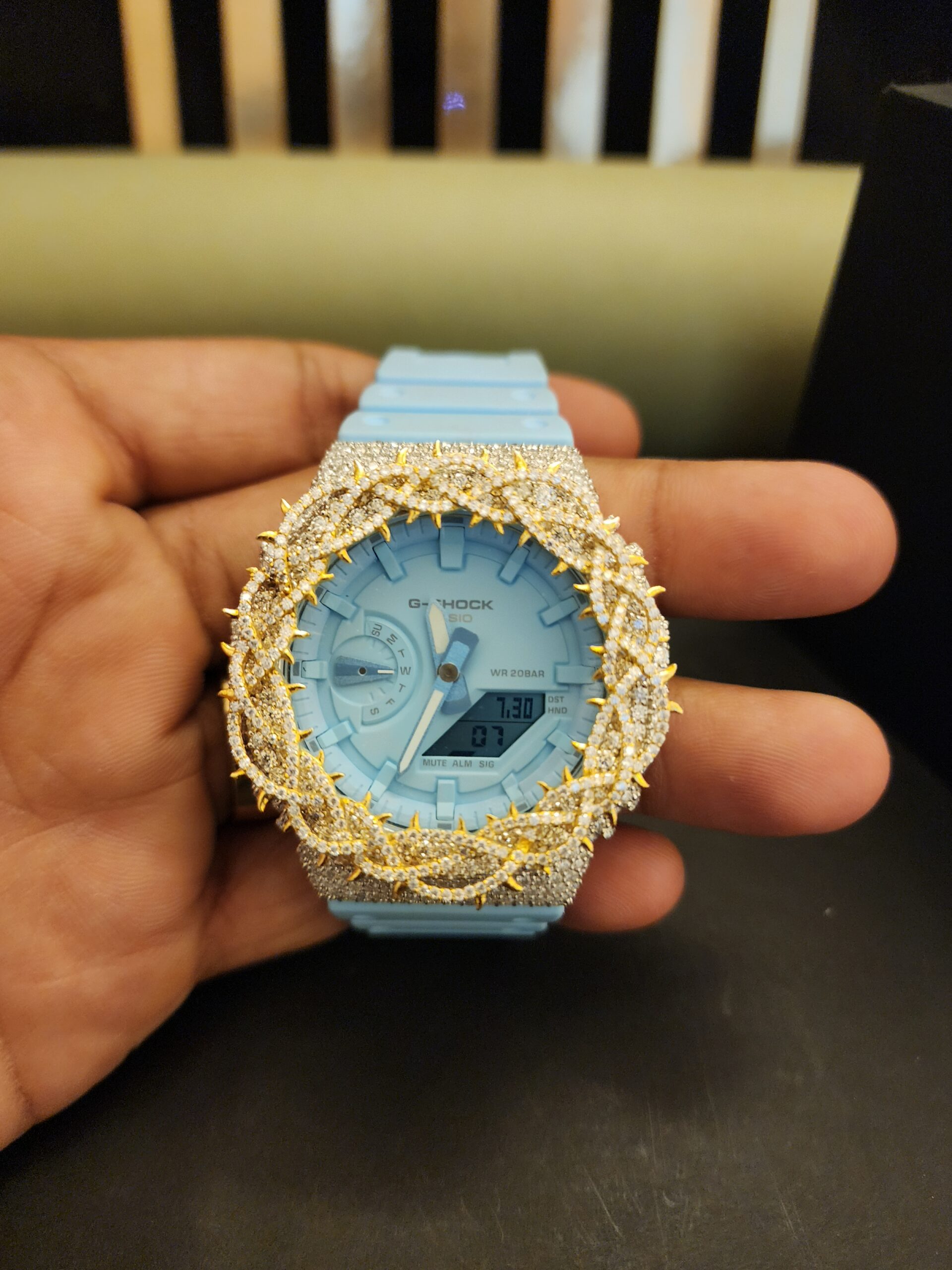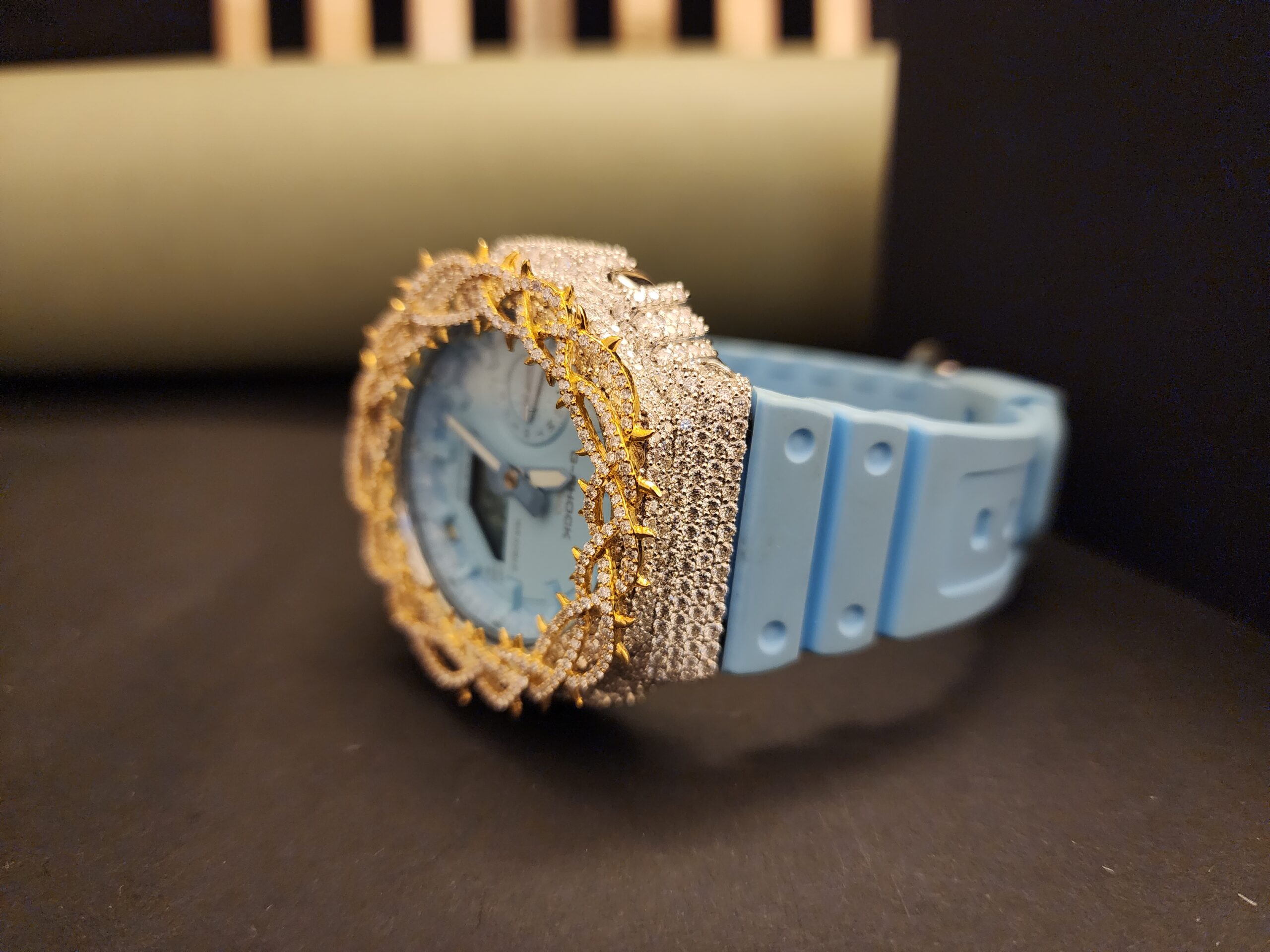 Skeleton Round Luxury dial moissianite diamond Half Throne swiss movement With Sky Color Rubber Band