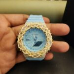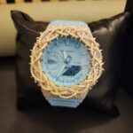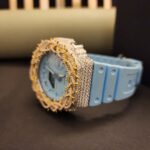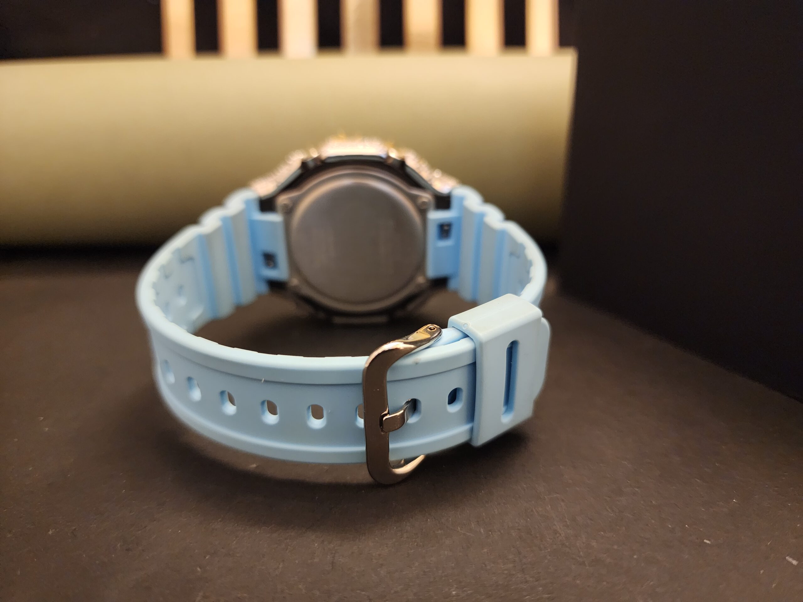 Round Dial Luxury Japanese Quartz Movement Diamond Watch Moissanite with Half Throne With Sky Color Rubber Band