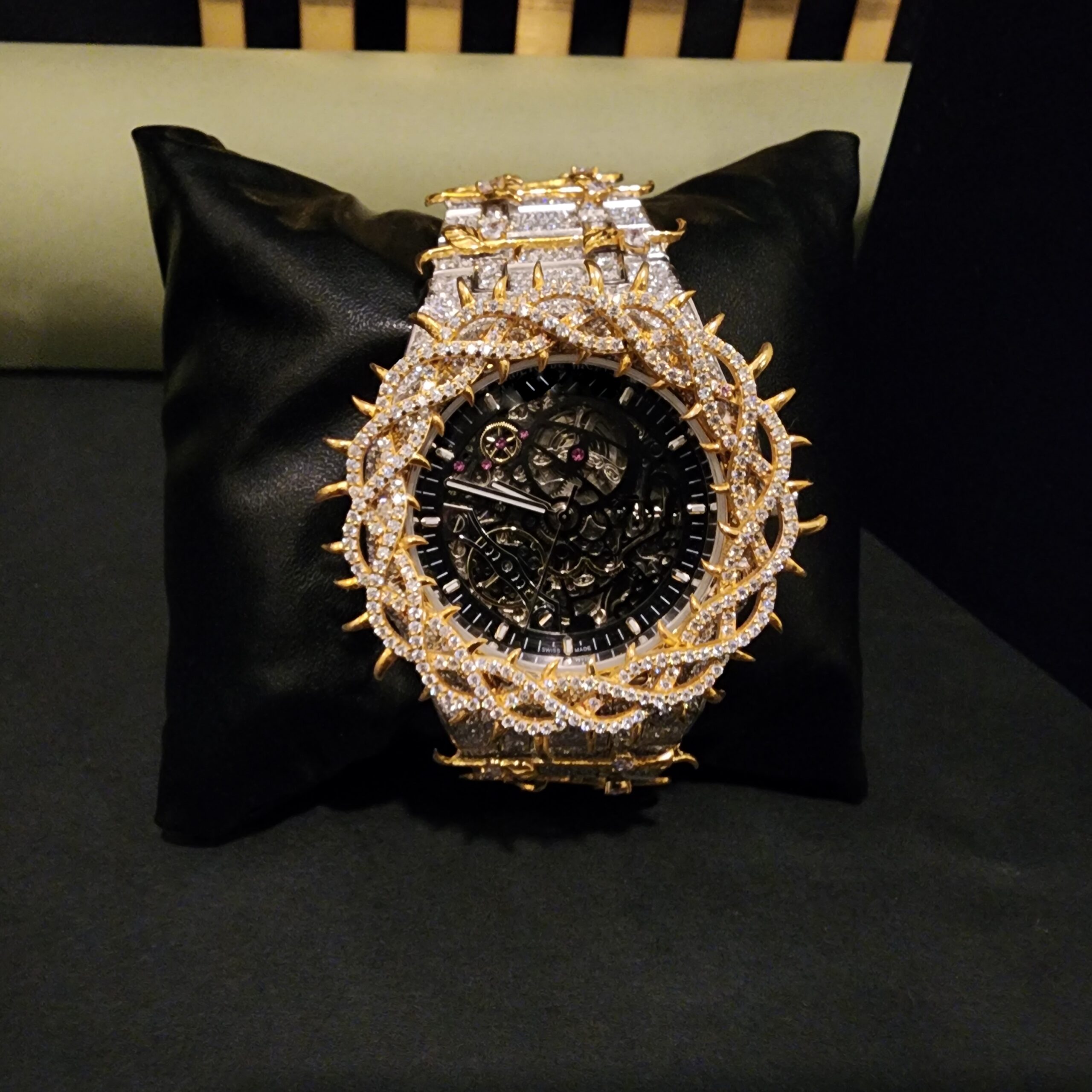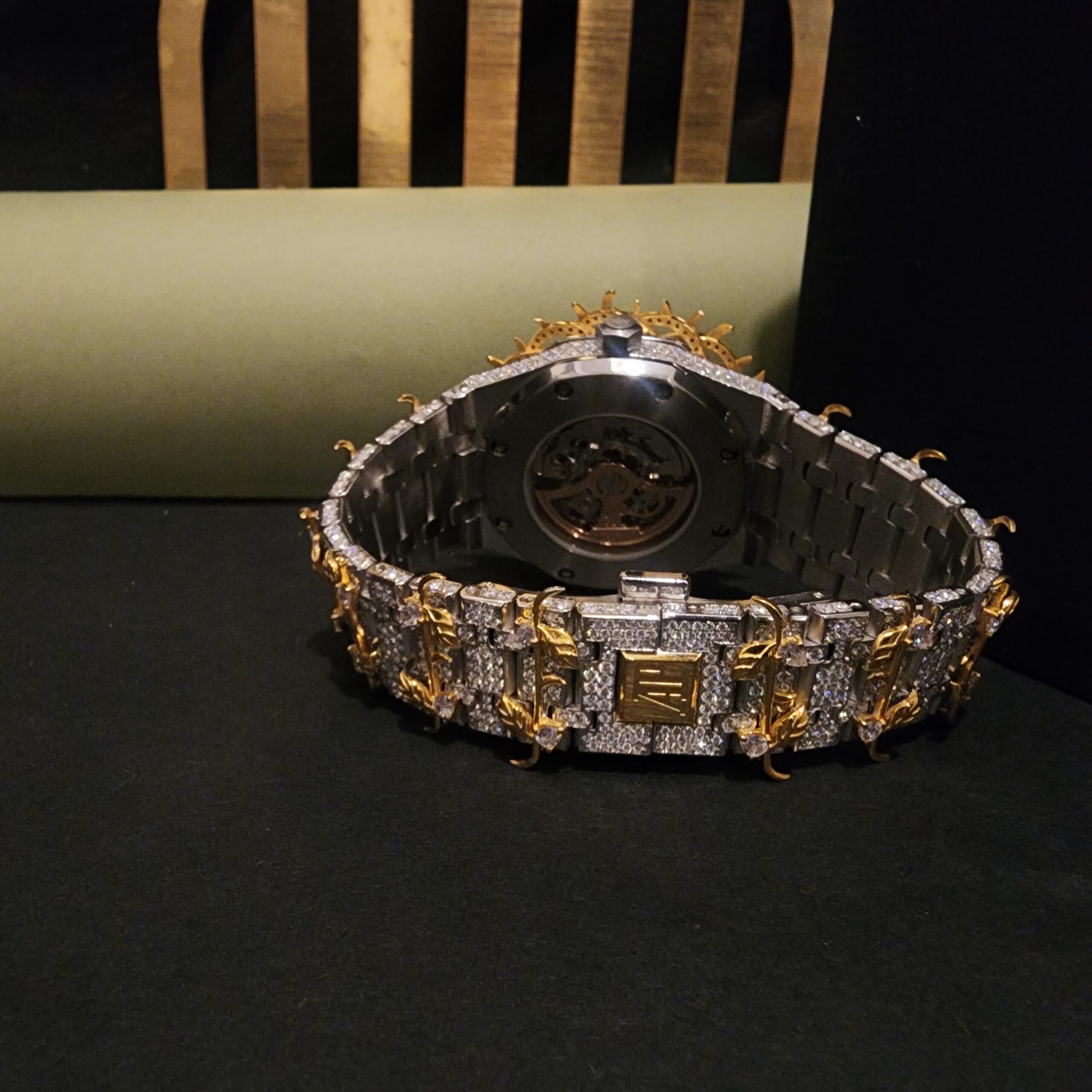 Skeleton Round dial d-vvs moissianite diamond with thrones full iced out swiss movement hip hop diamond watch