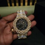Skeleton Round Dial Luxury Japanese Quartz Movement Hip Hop Diamond Watch D-VVS Moissanite with Full Throned iced out