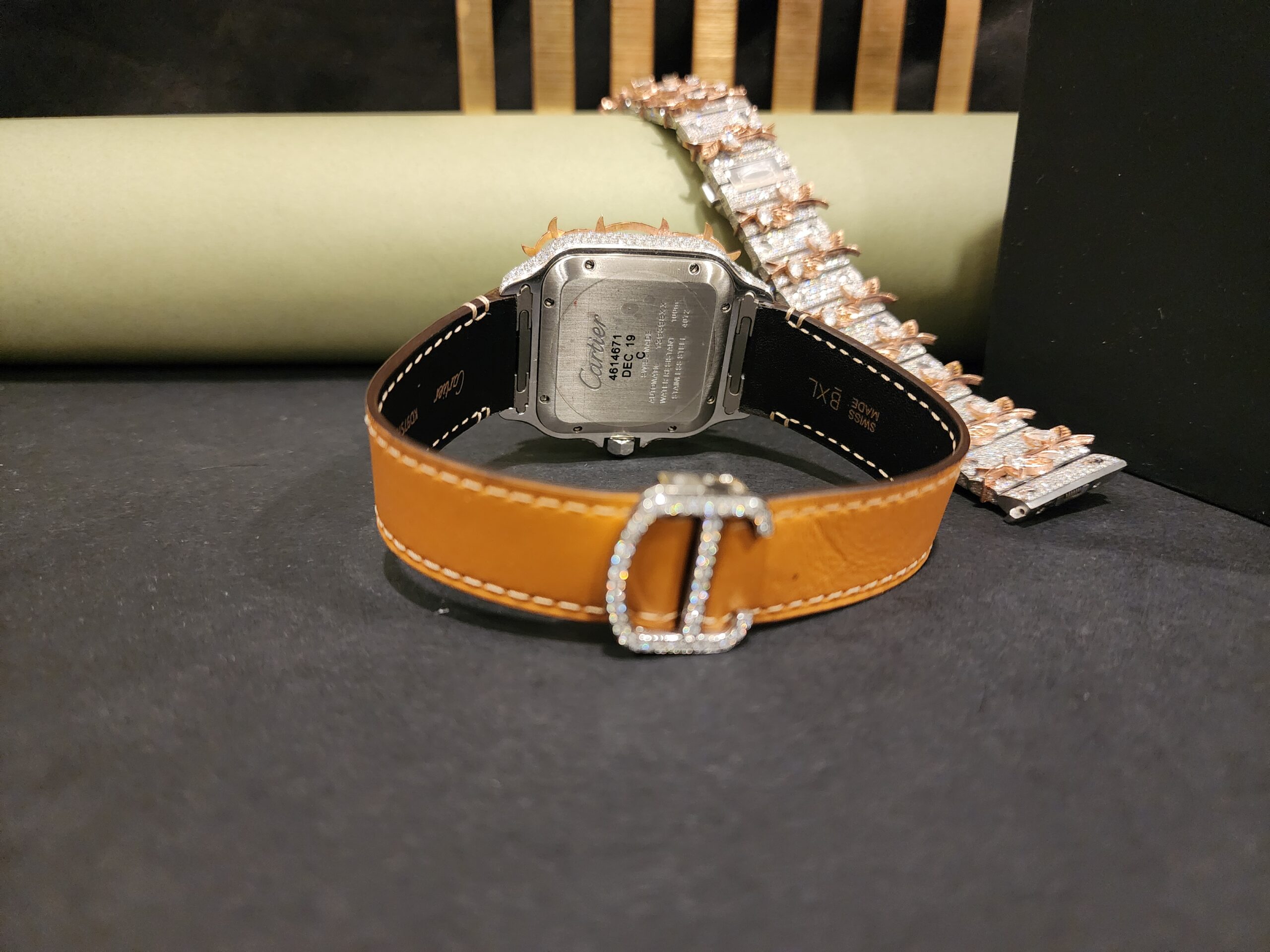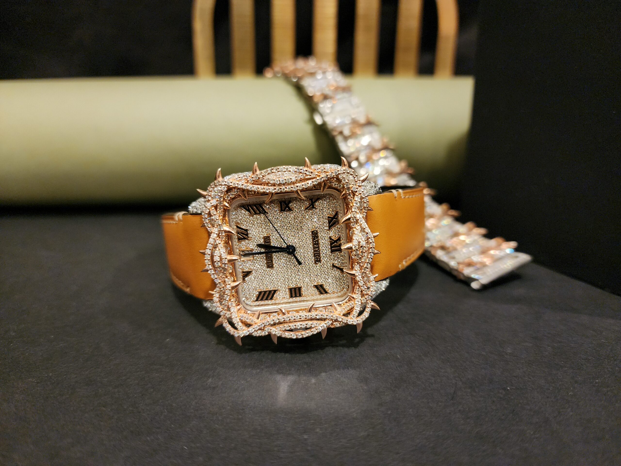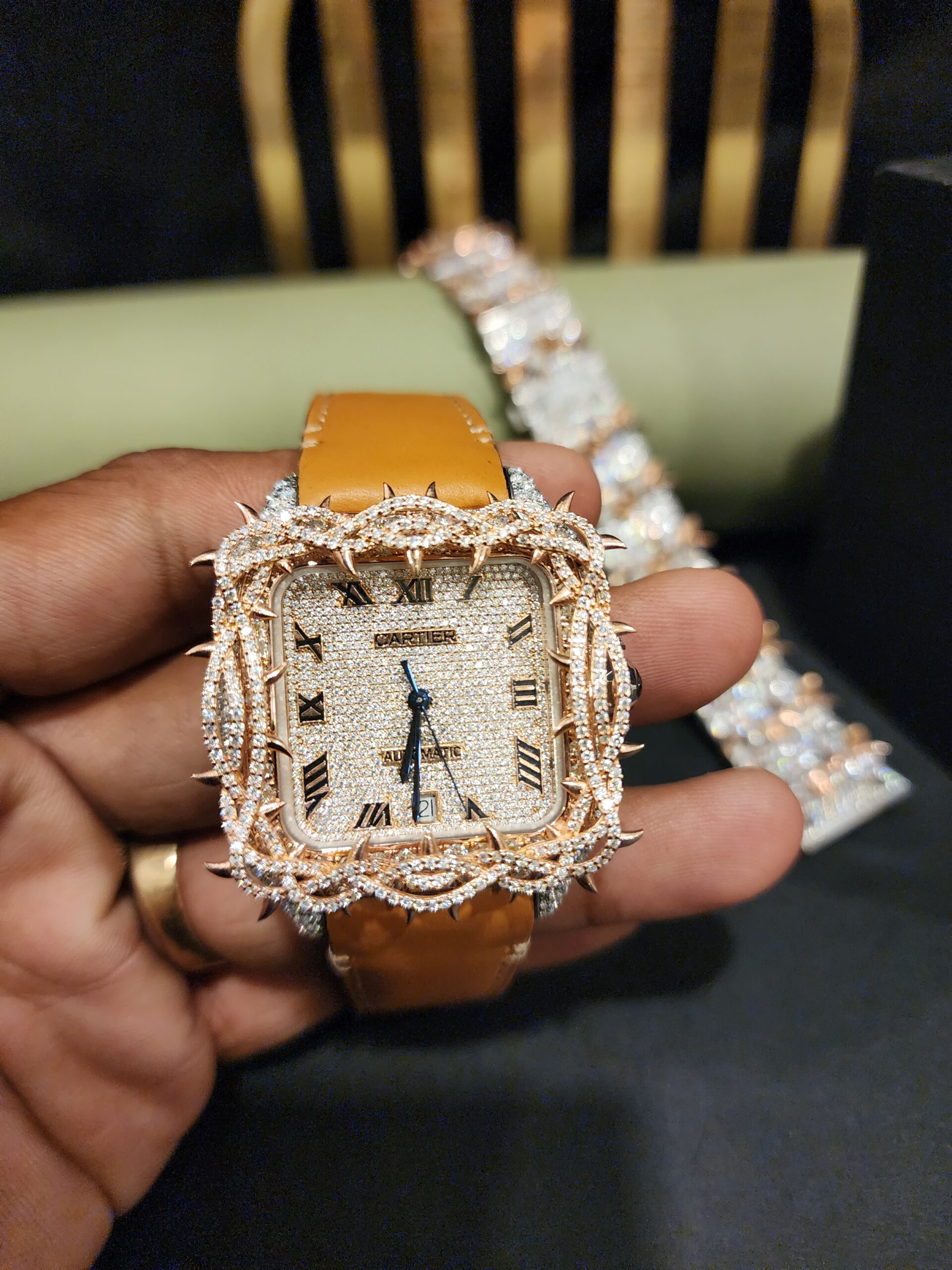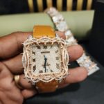 Skeleton Square dial moissianite diamond with Half thrones And Rubber Band swiss movement hip hop diamond watch