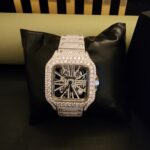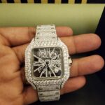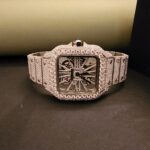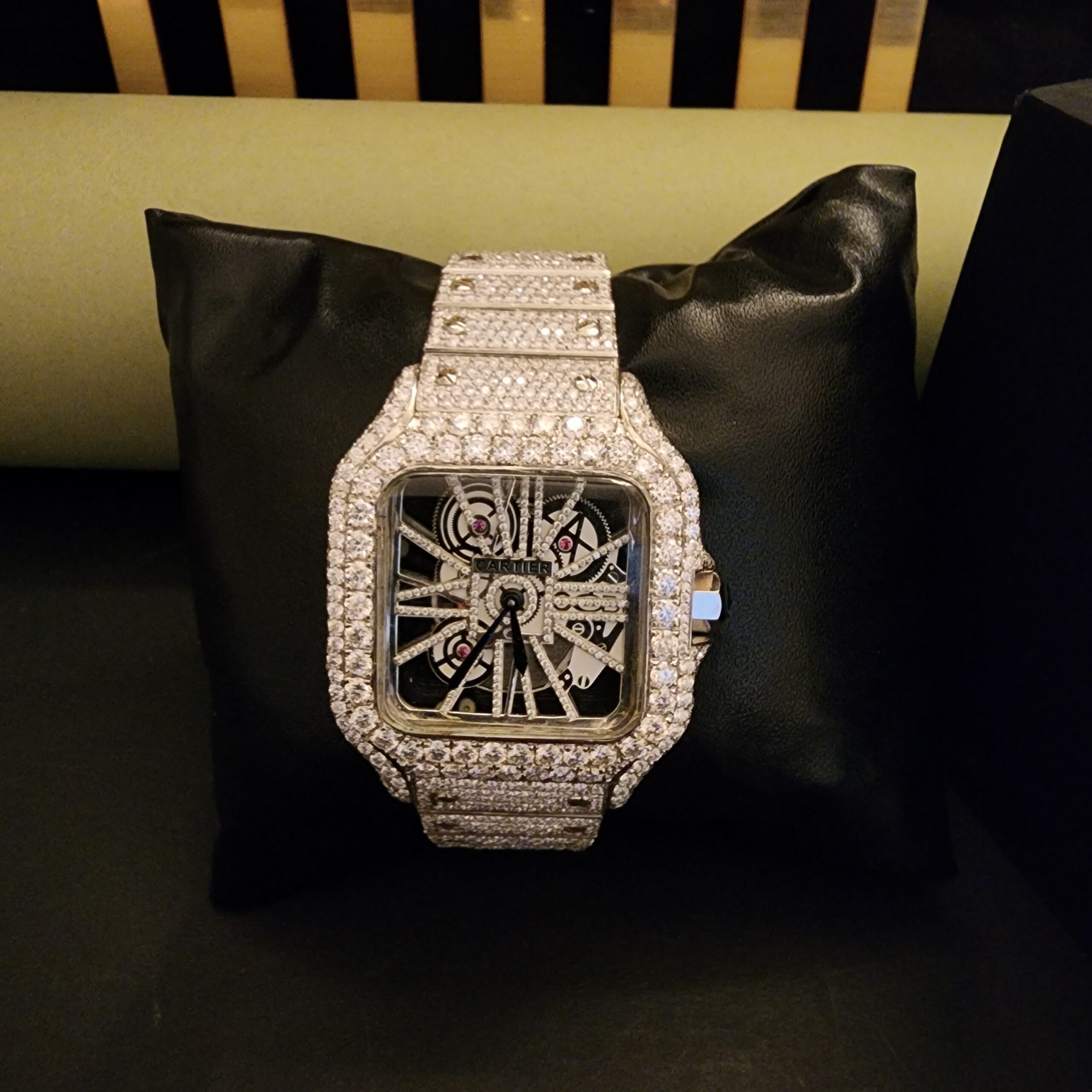 Skeleton Square Dial Luxury Japanese Quartz Movement Diamond Watch Moissanite with Full iced out