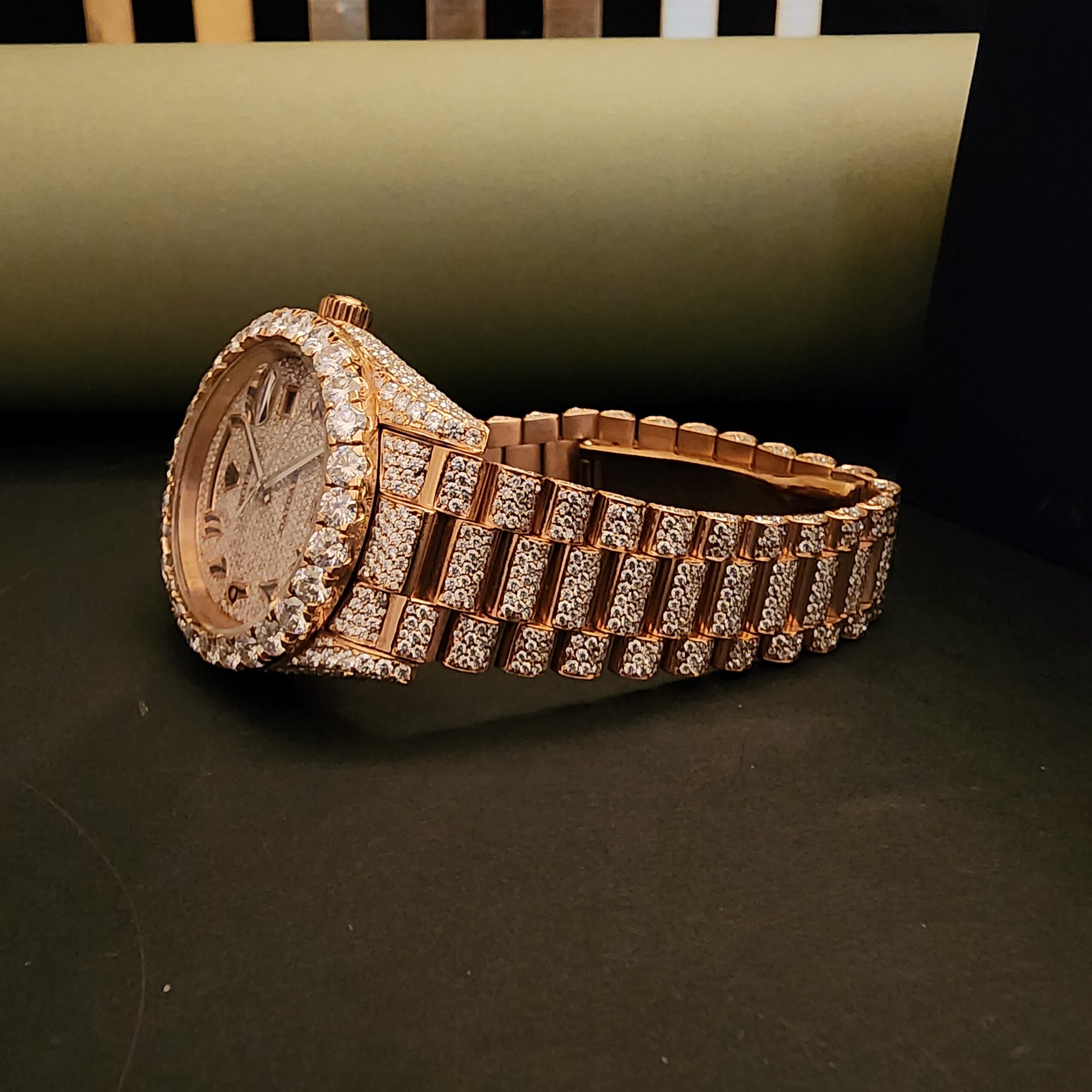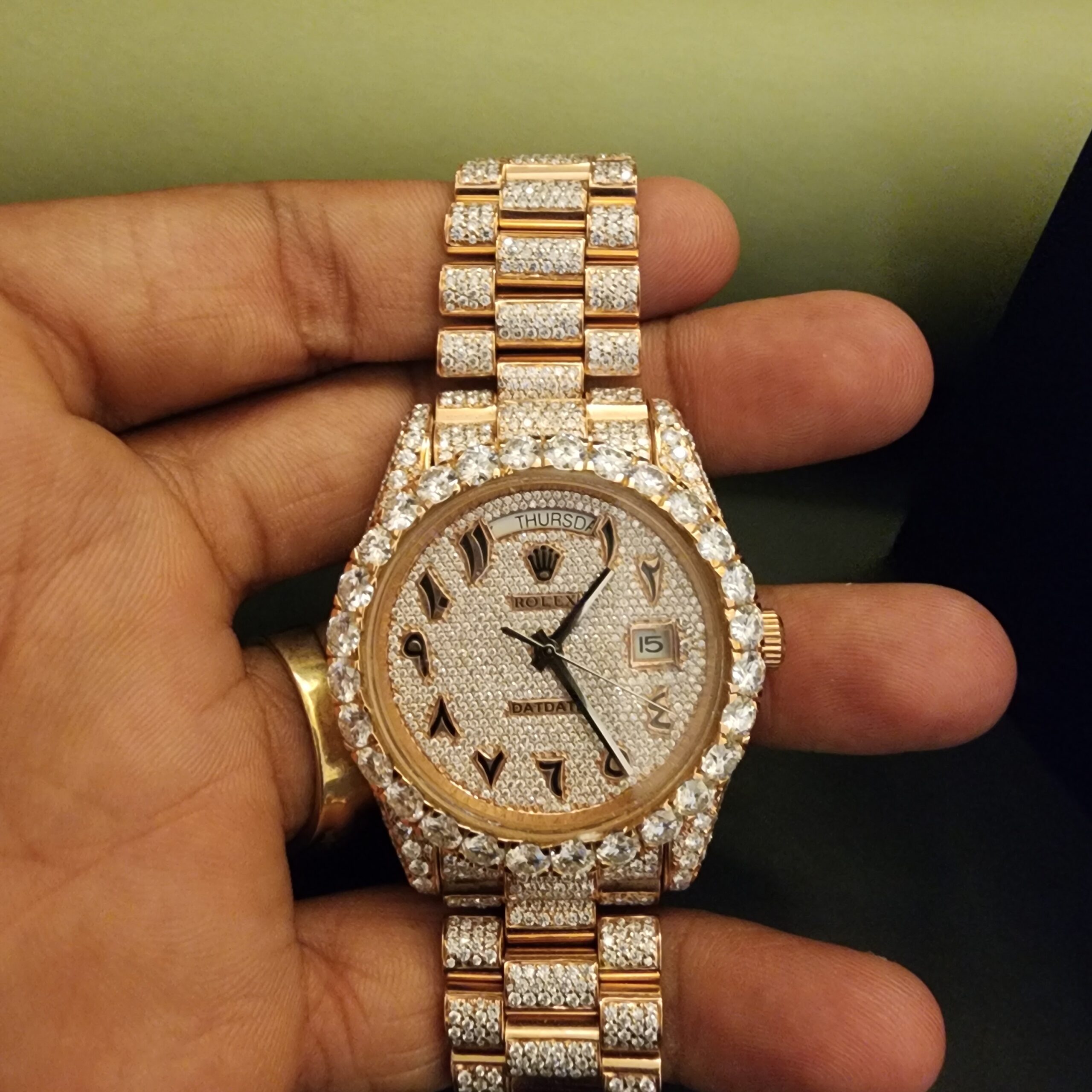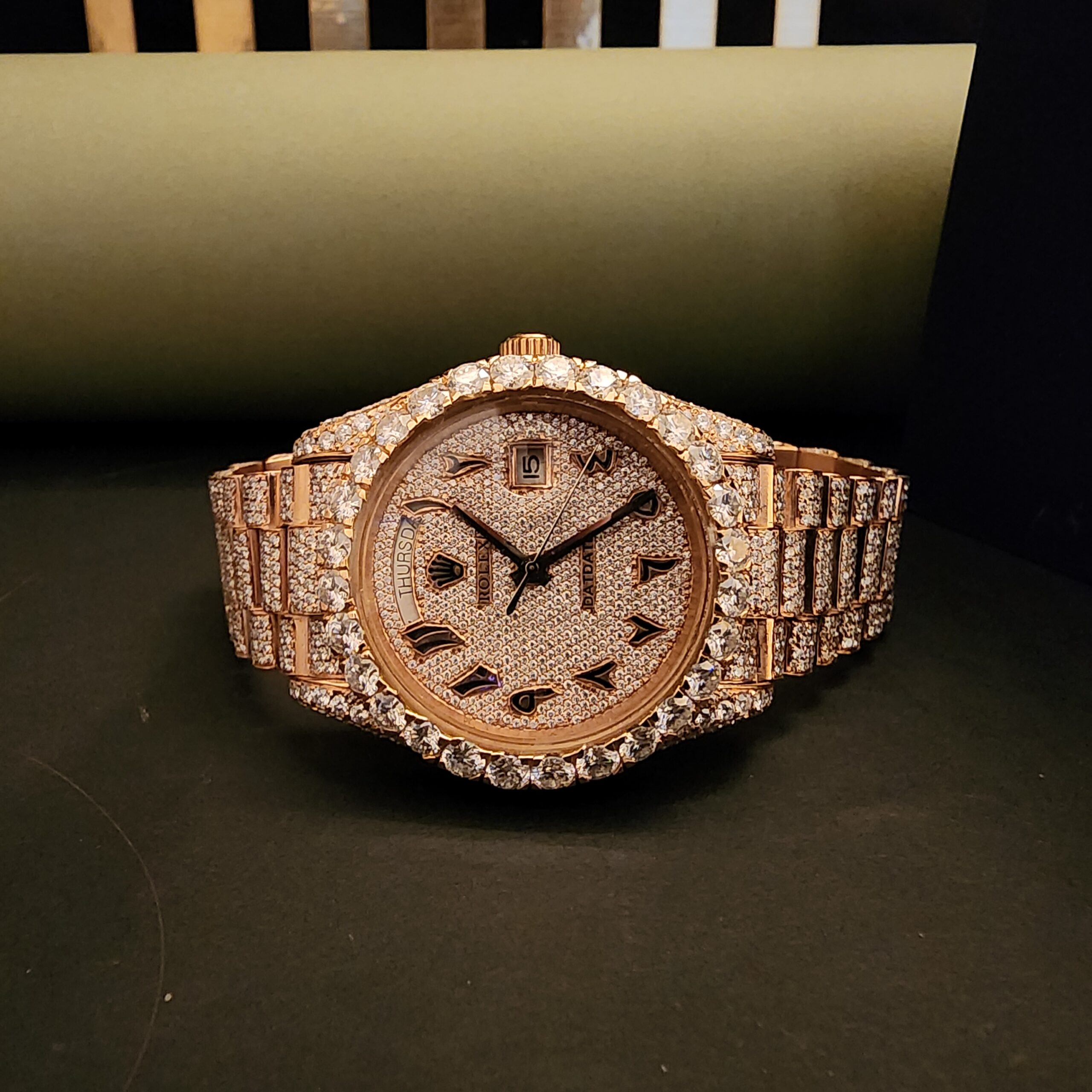 Stunning Round Adorable Dual Watch – Arabic Numerals, Fully Iced Out with Moissanite Diamonds, Japanese Movement
