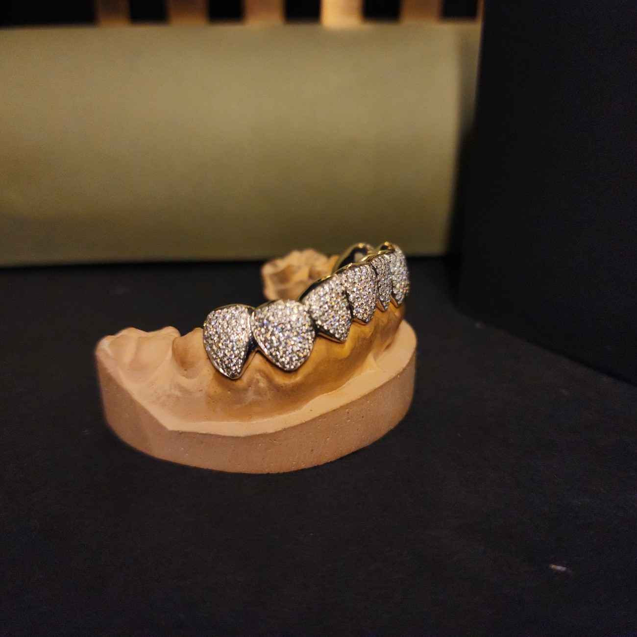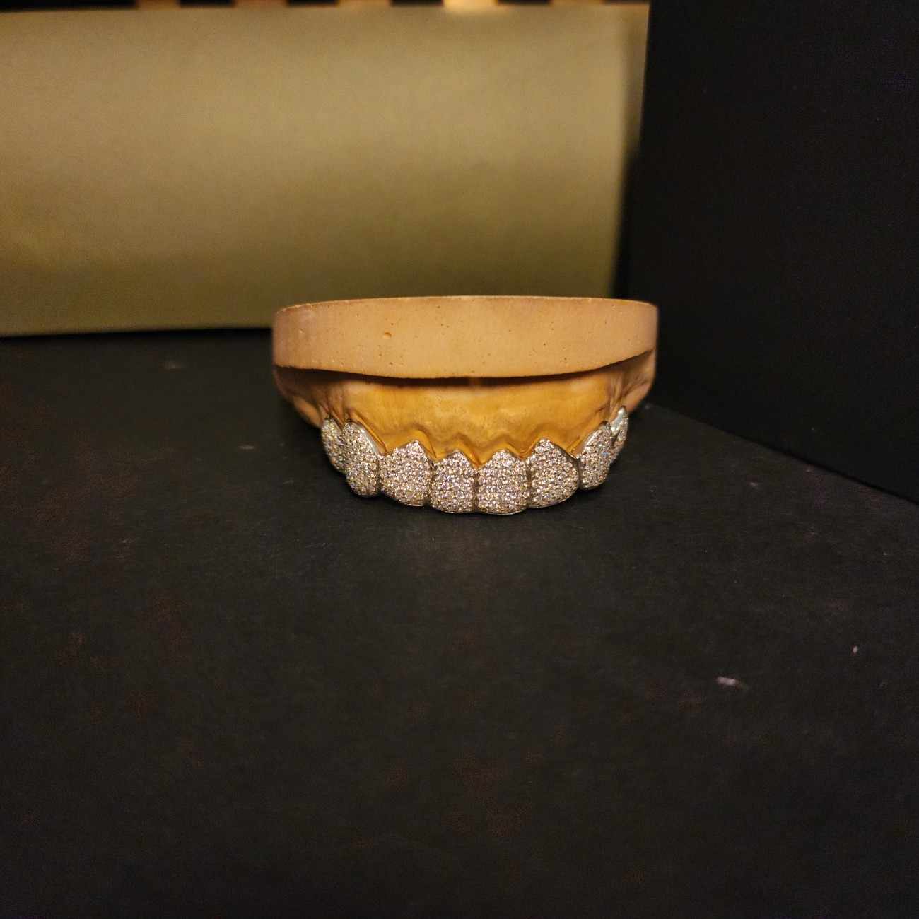 Trendy Men’s Diamond Iced Out Grillz Set with 925 Sterling Silver Gold Plated Full Pave Hip Hop Rapper Mouth Jewelry