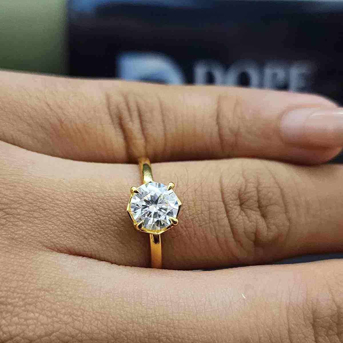 Trendy Round Cut Solitaire Ring in 18KT Gold Plated Stainless Steel for Wedding Party Gift