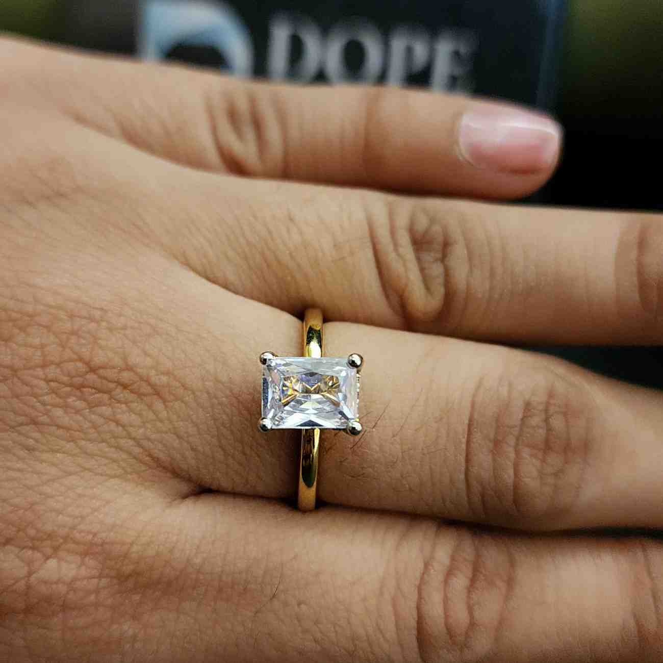 Trendy Women Radiant Cut Moissanite Lab Created Unique Design in 18KT Solid Gold Fashion Rings for Valentine’s Gift