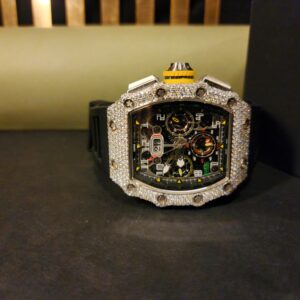 Chronograph Moissanite Diamond Watch With Latest Look Unique Diamond Watch With Black Rubber Belt